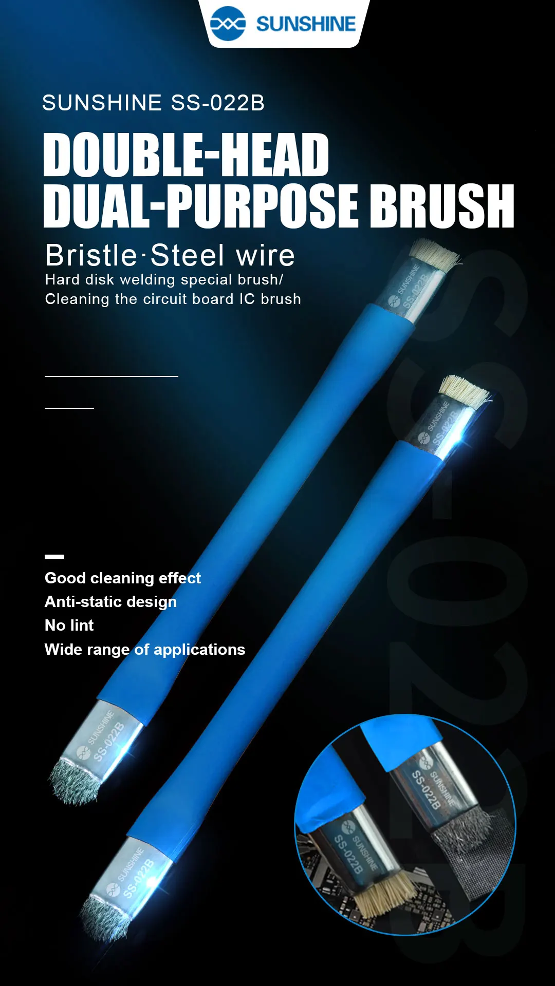 Безопасная щетка SUNSHINE SS-022B, Антистатическая щетка для чистки материнской платы, печатной платы, набор инструментов для ремонта мобильный телефон, удобство с двойной головкой