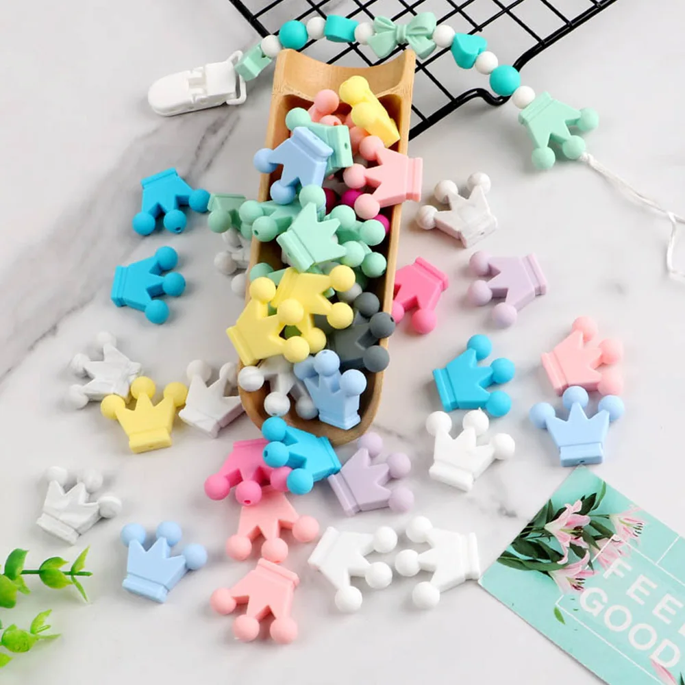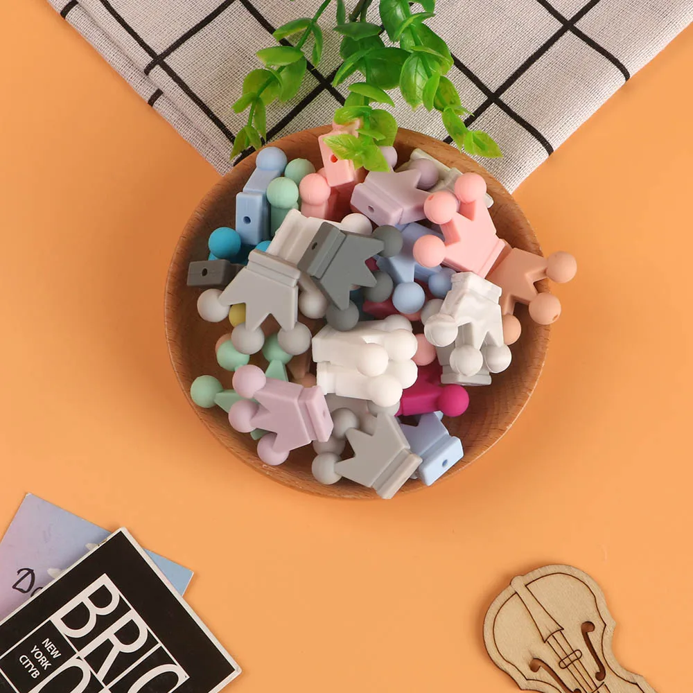 Kovict 10 шт. большая корона силиконовый бисер ребенок прорезывание зубов игрушки пищевого класса DIY соски цепь кулон аксессуары жевательные прорезыватели