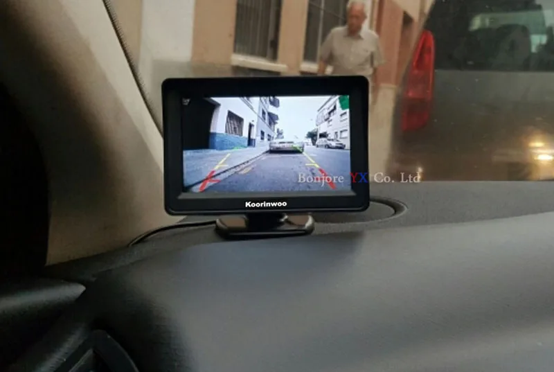 Может быть подключен к камере и любому монитору заднего вида и отображать расстояние на мониторе