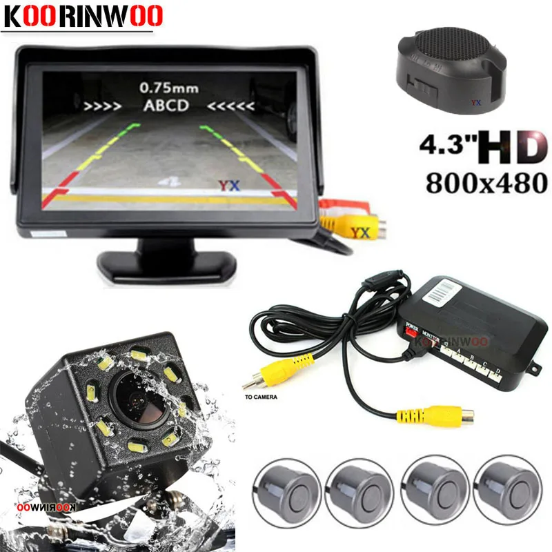 Автомобильный видеомонитор Koorinwoo, Автомобильный датчик парковки, 4 радара, Автомобильная камера заднего вида, камера заднего вида, цифровой экран ночного видения, парктроник заднего вида