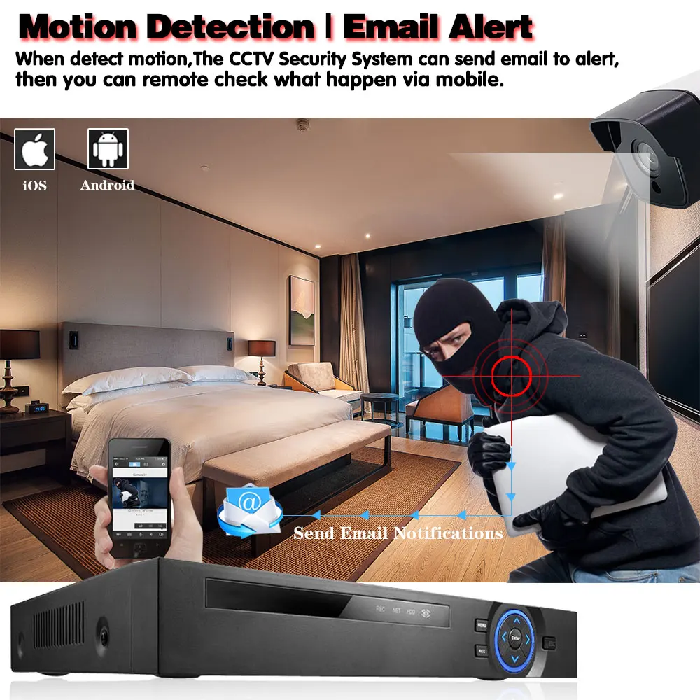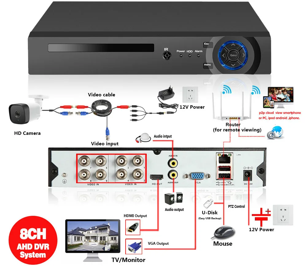 Простая настройка, всего 4 шага для просмотра на мобильный телефон,Просмотр видео в режиме реального времени в системе из любого места и в любое время с помощью смартфона, стола или ПК с передовой технологией P2P, вы можете получить удаленный доступ к вашей системе в течение нескольких минут или меньше, нет необходимости в переадресации, удаленный доступ никогда не был таким простым!