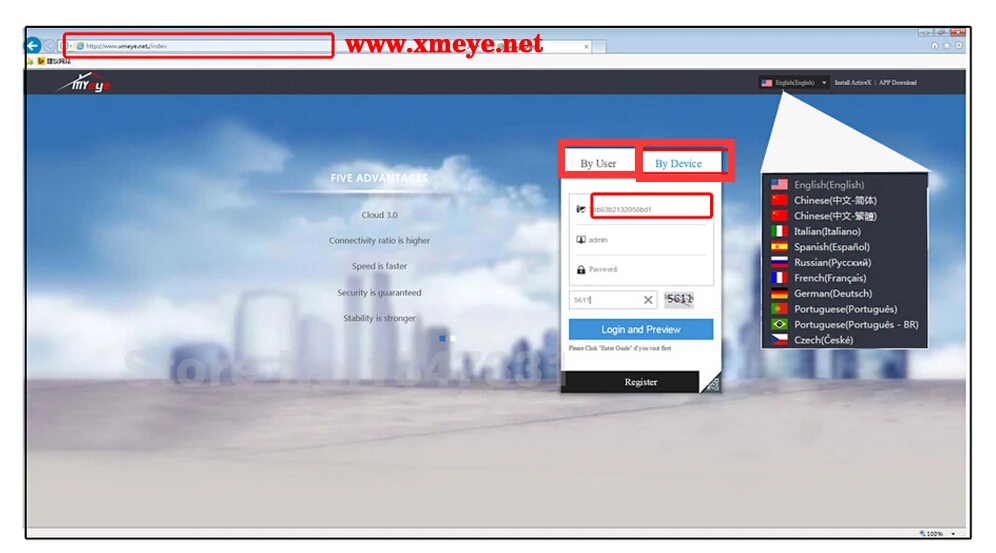 Затем введите веб-сайт P2P Cloud: www.xmeye.net