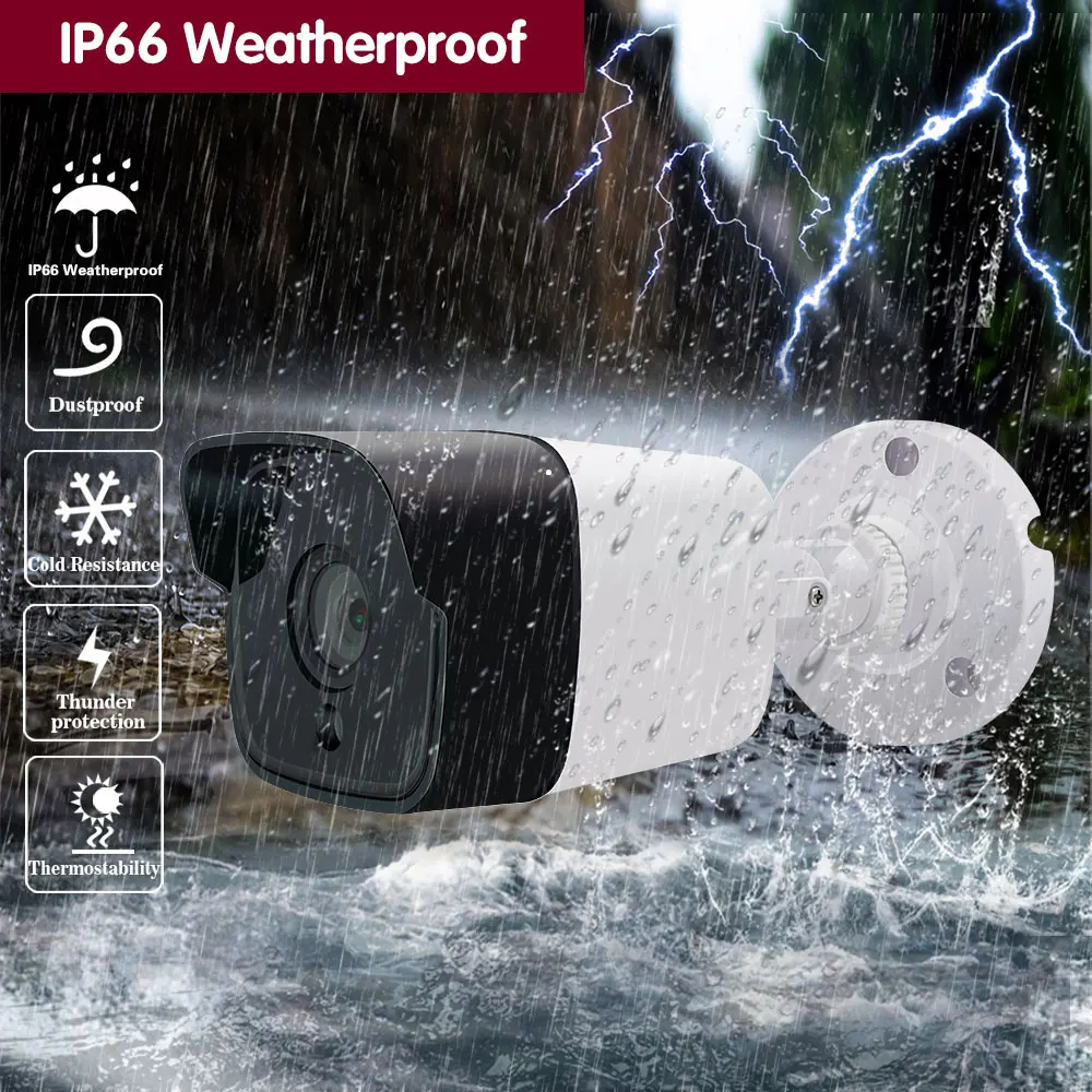 Камеры изготовлены из профессиональных водонепроницаемых материалов. Профессиональная защита от атмосферных воздействий IP66 обеспечивает стабильную производительность как внутри, так и снаружи помещений.