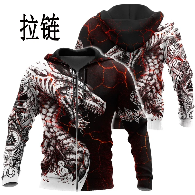 Толстовка Мужскаяженская с 3D-принтом дракона, уличный пуловер унисекс, повседневная куртка на молнии, спортивная одежда, черный белый, 2021