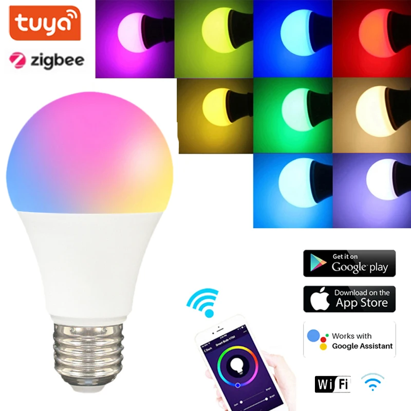 Умная лампочка ZigbeeTuya с голосовым управлением, 9 Вт, RGB + CW, с регулируемой яркостью, E27, Wi-Fi, светодиодная волшебная лампа, 100-240 В переменного тока, для работы с Alexa, Google Home