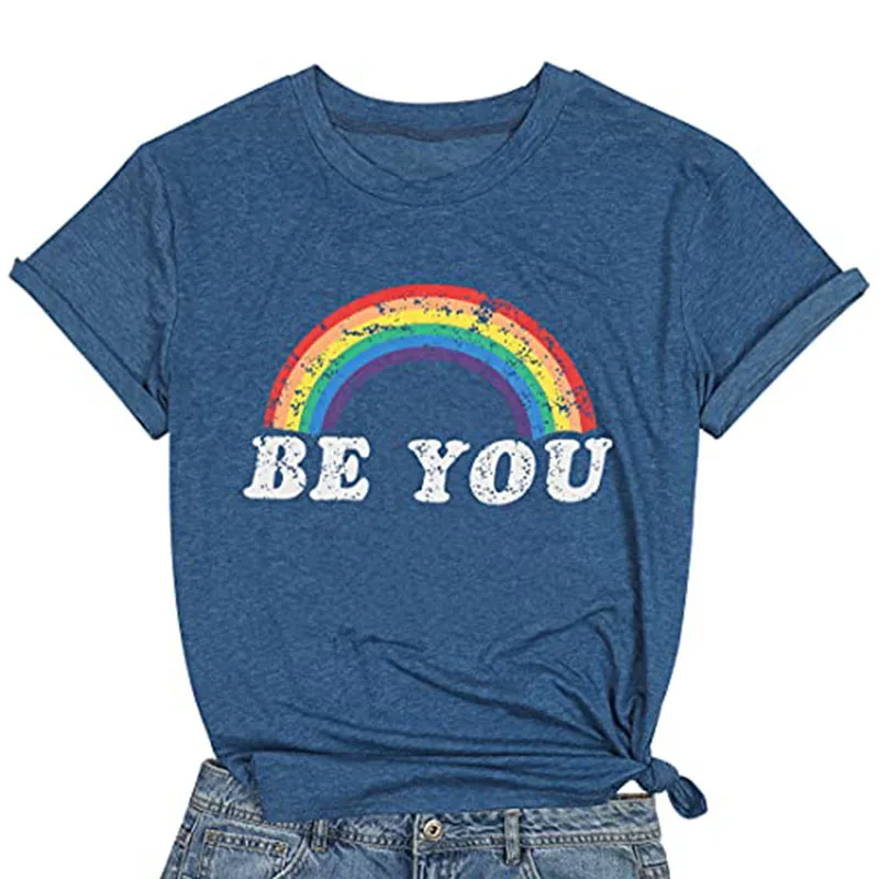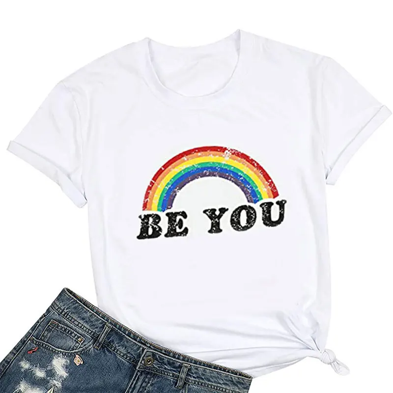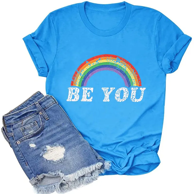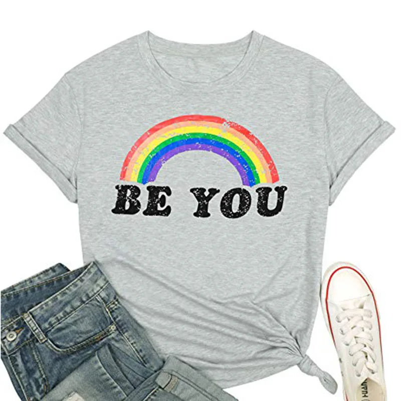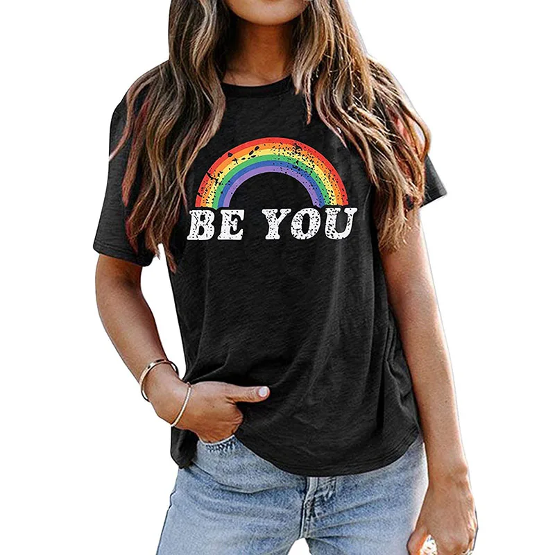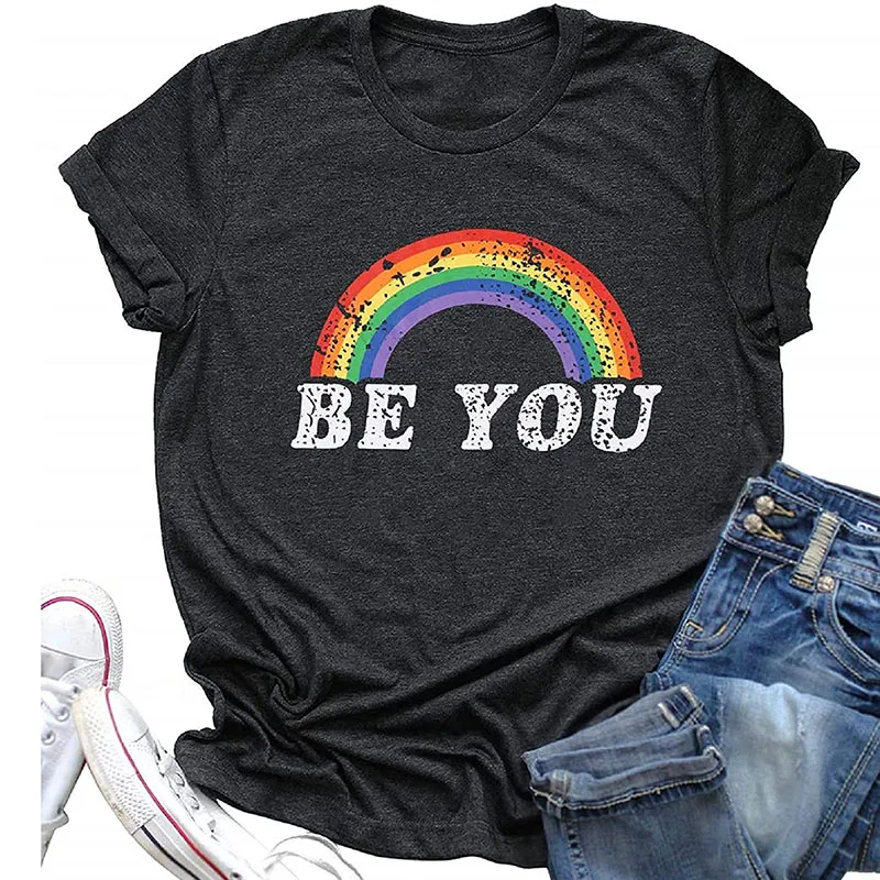 Футболка гордость, рубашка, женские футболки с радужным графическим рисунком, забавная футболка с надписью Be You, ЛГБТ футболки за равенство, повседневные топы с коротким рукавом