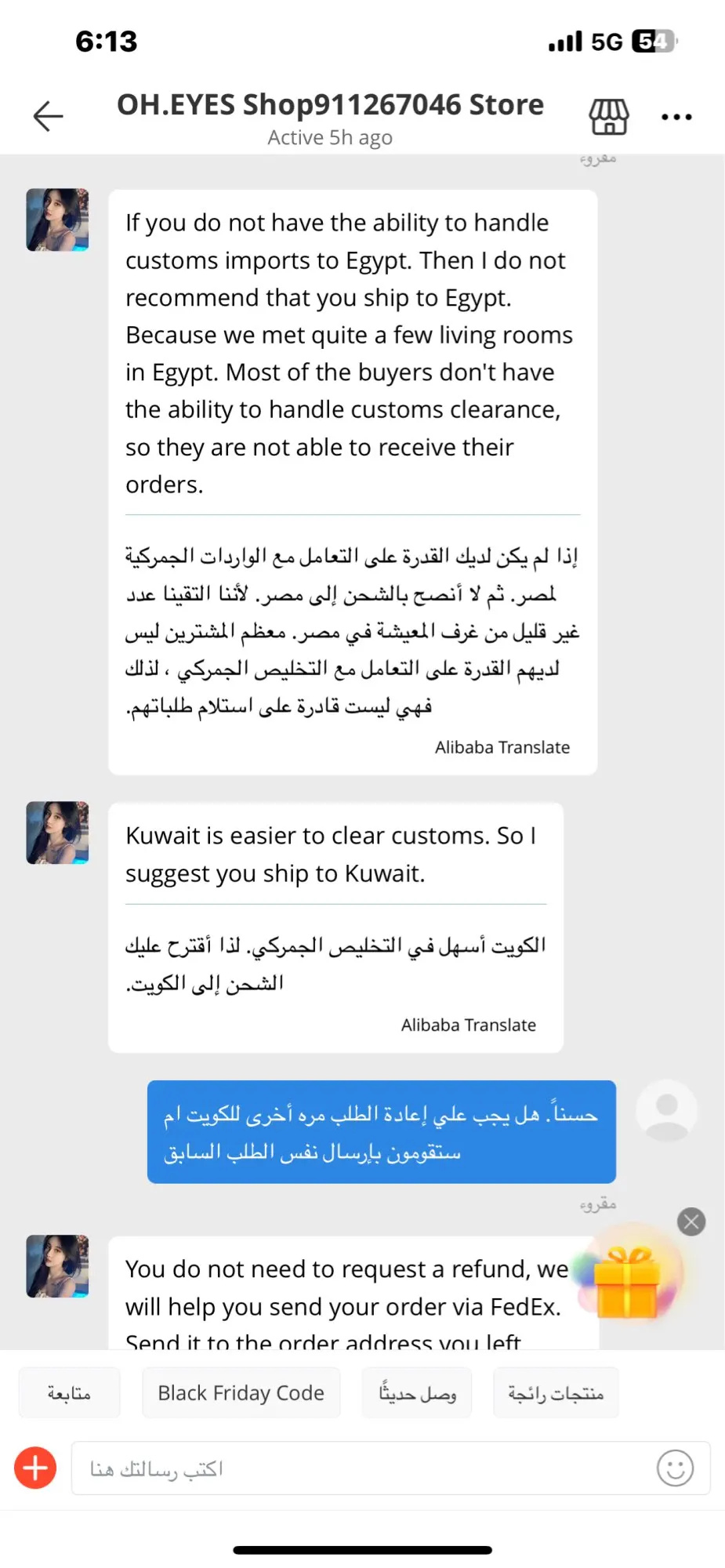 Во @-@ первых: магазин задержал отгрузку продукта, что привело к задержке получения более чем на 9 дней от согласованного. Второе: Я спросил продавца о возможности отправки камер в Египет вместо Кувейта, и его ответ был таким, что Египет будет очень сложным в процедурах таможенного оформления для отгрузки и что лучше задержка товара и книга на таможне Kuwaiti после того, как продавец заверил меня, что доставка бесплатная. Я был удивлен стоимостью дополнительной доставки, рассчитанной на более чем 1 $0, и я должен заплатить, иначе груз будет уничтожен. Когда я попросил продавца снова принять груз в Китай, чтобы вернуть свои деньги, он сказал мне, что я заплачу за отправку груза обратно в Китай, а не за продавца. В дополнение к плохому способу обращения с продавцом от клиентов и отсутствия уважения или оценки клиента и лжи в предоставлении правильной информации клиенту О таможне и лжи в то время я никому не советую иметь дело с этим продавцом в любой его продукции, потому что то, что он пишет в рекламе, противоречит действительности.