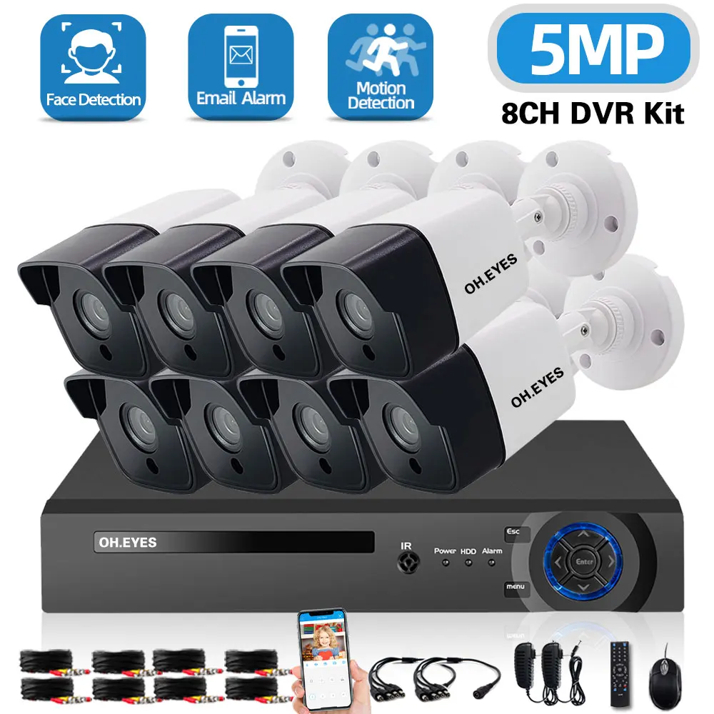 8CH CCTV Камера Системы 5MP AHD DVR комплект Открытый обнаружения движения безопасности Камеры Скрытого видеонаблюдения Камера Системы комплект XMEYE 8-канального сетевого видеорегистратора H.265