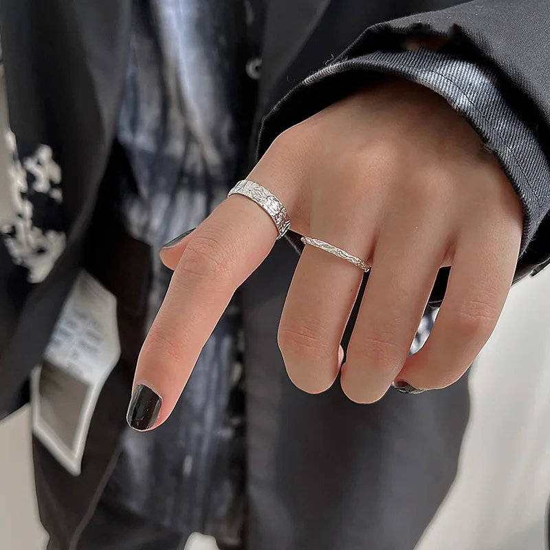 Кольцо в стиле панк, хип-хоп, серебристое кольцо неправильной формы с регулируемой текстурой в виде сахарной бумаги для девушек и женщин, крутой подарок