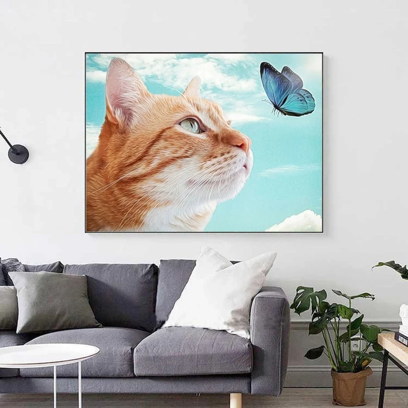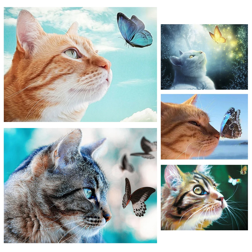 Животные, алмазная живопись, кот, бабочка 5D, сделай сам, квадратная мозаика, алмазная вышивка, искусство стразы, домашний декор, рукоделие