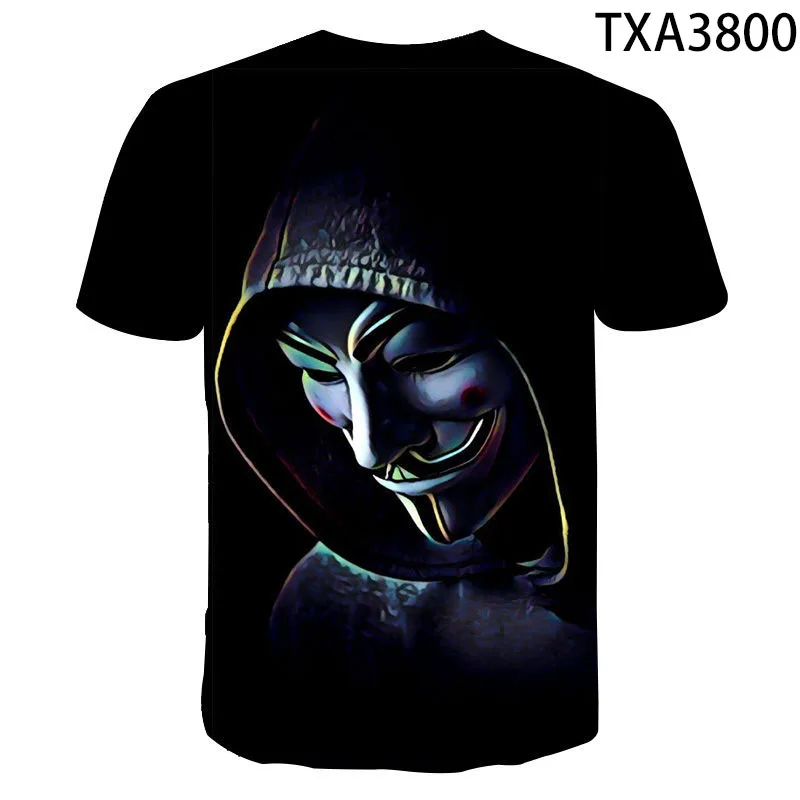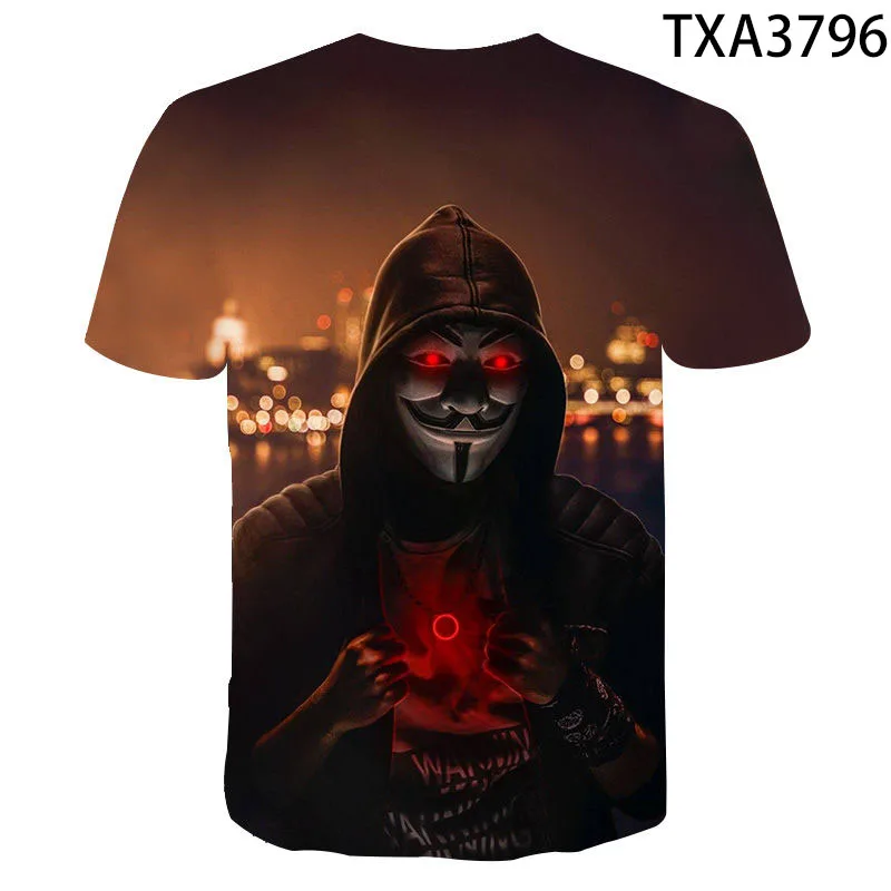 Хакер маска 3D Мужская футболка с рисунком женские летние футболки с короткими рукавами Повседневная футболка Забавный мальчик девочки; Дети Топы Прохладный Streetwear Tees