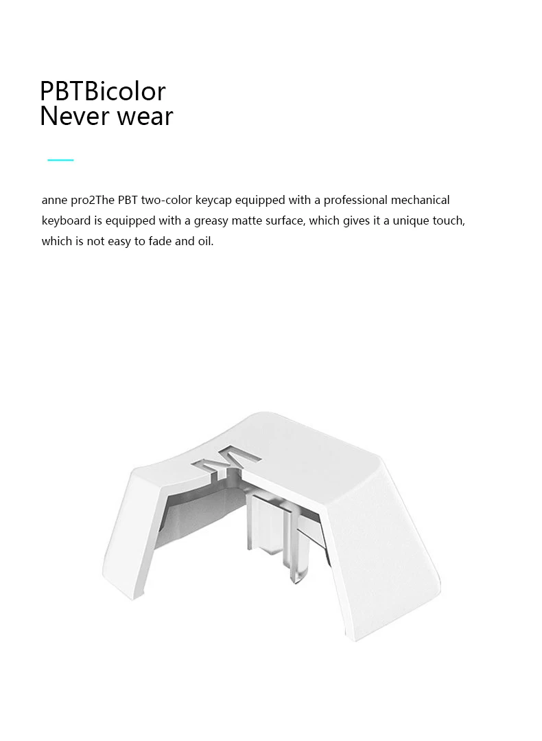 Модель: ANNE PRO 2Макет: 60% ANSIКоличество ключей: 61 КлючЧехол: ABS черный/белый чехолПереключатель: GATERON (синий, коричневый, красный, желтый, коричневый)Kailh BOX (белый, коричневый, красный)Вишня (синий, коричневый, красный, серебристый)Поддержка системы:Android,IOS,Linux,Mac OS,Nintendo,Windows,Windows 10,Windows 2000,Windows 8,Windows 7Официальный веб-сайт Ссылка для скачивания:Http://www.obins.net/obinslab-starterИли по следующей ссылке:MACOS:http://anne-pro-2.oss-cn-beijing.aliyuncs.com/mac.dmgWIN 32 бит: http://anne-pro-2.oss-cn-beijing.aliyuncs.com/win32.exeWIN 64 бит: http://anne-pro-2.oss-cn-beijing.aliyuncs.com/win64.exeПодсветка 16,8 миллионов RGBИсточник: светильник SMDКлюч от привидения: NKROKeycap: PBT Двойной Выстрел Литья KeycapАккумулятор: встроенный литий-ионный аккумулятор 1900 мАчРабочий ток USB: 5 В постоянного тока, 500 мА максРазмер: 97*284*40 ммВес: 635 гКабель: 1,8 м Тип-C USB Дата-кабель-Двухрежимное соединение. Соединение bluetooth 4,0 и Type-C USB-C двойным режимом, делает его широко совместимым с несколькими системами, для Mac, iOS, Windows, Linux и Android.-Двойной FN. Двойная клавиша FN (FN1/FN2), которая создает больше возможностей для установки функции слоя.-Интеллектуальная функция «Tap Key» и «Magic Fn».Tap Fucntion: «Правый сдвиг», «FN1», «FN2», «Правый Ctrl» в комбинации, как клавиша крана, вы можете установить функцию слоя крана, И когда вы нажимаете клавишу TAP, он будет перемещать эту функцию слоя. По умолчанию они ведут себя как клавиша со стрелкой при прослушивании.Функция Magic Fn: сохраняя оригинальную функцию CapsLock, волшебная клавиша может копировать функцию FN1 или FN2, что дает вам быстрый доступ к медиа. Это означает, что magic fn может действовать как FN ключ. Вы можете установить слои fucntion для FN1/FN2, настроить любые клавиши или даже создать Макрос для комбинации клавиш через стартер, и функция Magic Fn может зеркально отображать это поведение Fn.-Долгий срок службы. Аккумулятор большой емкости 1900 мАч, встроенная схема защиты предотвращает повреждение батареи.-Keycaps PBT. Doubleshot PBT keycaps, прочный и не легко блестит, как ABS keycaps.-Полная подсветка RGB. Полный RGB подсветкой, каждая клавиша может быть установлена RGB подсветкой независимо.-Большая Встроенная память для настройки. Программируемые Все клавиши, встроенная Встроенная память большой емкости для настройки функций TAP/Magic FN, настройка эффекта на светильник, настройка раскладки клавиатуры и настройки marco.Общий вопрос:1. Как управлять подсветкой?FN2 + 0 = включение/выключение подсветкиFN2 + 9 = Переключение режима подсветкиFN2 + - = уменьшение яркости подсветкиFN2 + + = увеличенная яркость подсветки2. Как подключить устройство bluetooth?Anne Pro2 поддерживает подключение четырех устройств. Включите bluetooth на переключатель, нажмите и удерживайте кнопку Fn2 + bluetooth ключ 1/2/3/4 до тех пор, пока не ключ мигает, затем выполните поиск Анны клавиатуры на вашем устройстве и выбрать для подключения.3. Как переключить устройство bluetooth?Короткое нажатие кнопки FN2 + Bluetooth 1/2/3/4, которая была сопряжена с.4. Поставляется ли Anne Pro 2 с адаптером Bluetooth?Нет, вам нужно купить bluetooth-адаптер отдельно, если вы хотите установить сопряжение с настольным компьютером.5. Как проверить оставшуюся мощность в беспроводном режиме?FN2 + 8, зеленый светильник показывает процент оставшейся батареи.