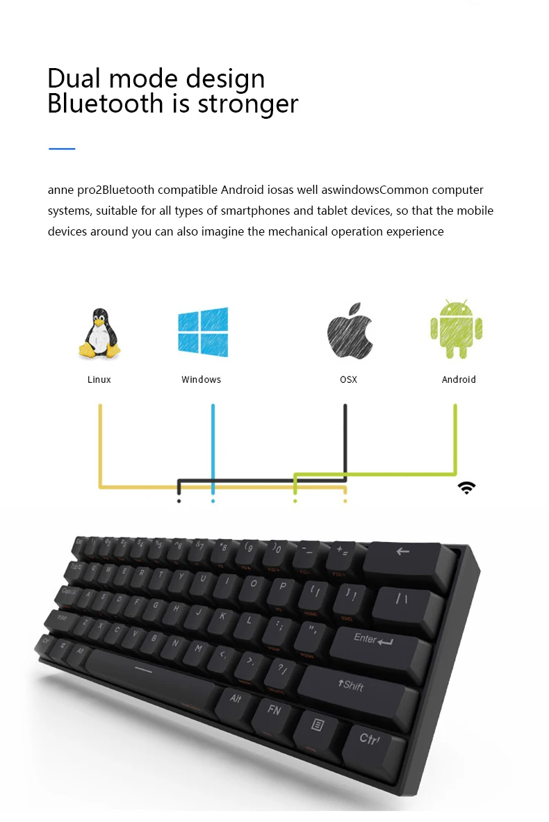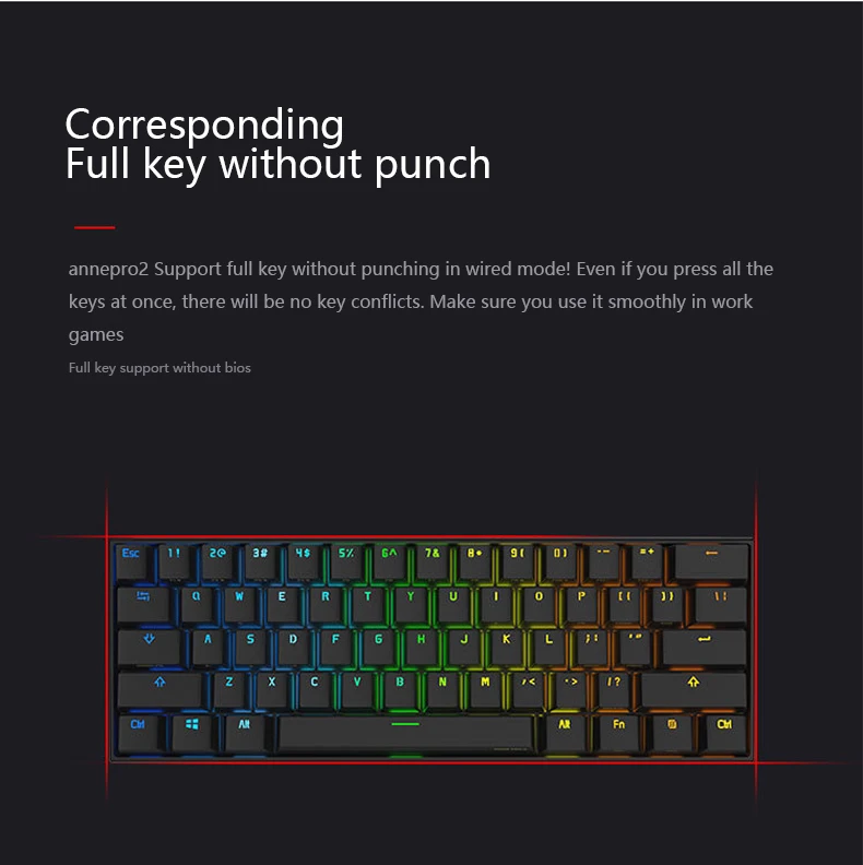 Номер моделиAnne Pro 2 Pro2 60% NKRO Bluetooth 5.0 Type-C RGB 61 Keys