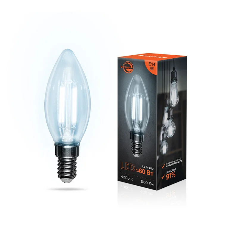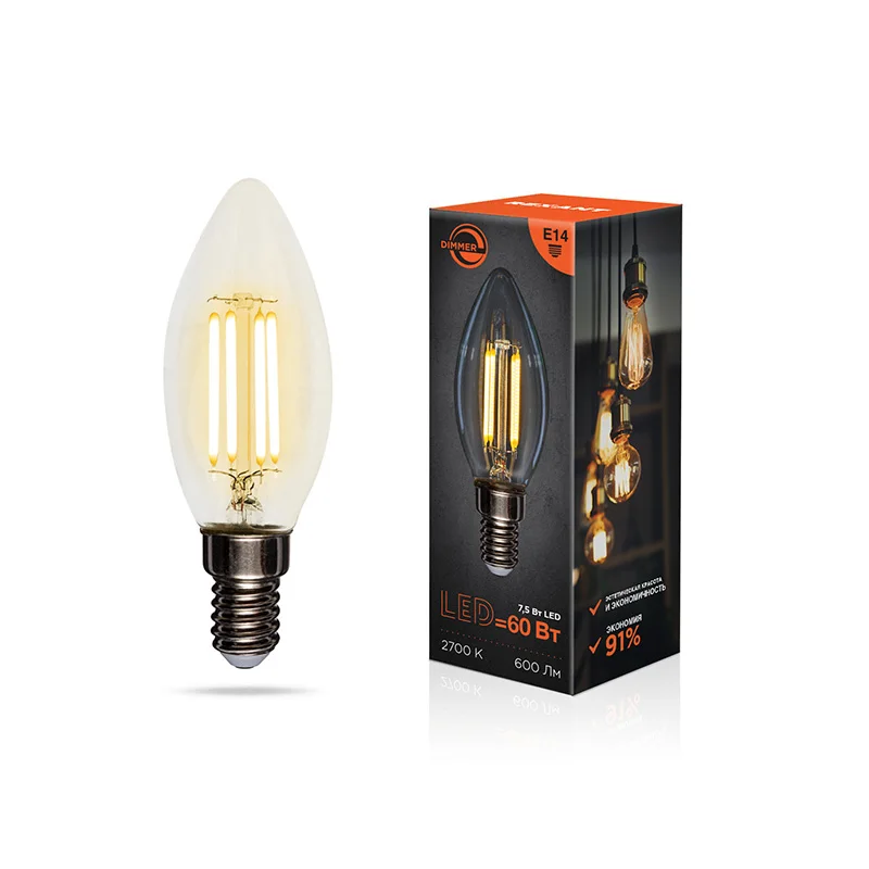 Прозрачная лампа накаливания rexant cn35 в виде свечи с гнездом E14 идеально подходит для дизайнерских осветительных комнат, домов, гостиниц, кафе и других объектов. Светодиодный светильник накаливания включает в себя все лучшие свойства матричных светодиодный ламп и традиционных ламп накаливания. Они обладают высокой энергоэффективностью и долгим сроком службы. Из-за распространения светильник во всех направлениях лампы накаливания rexant потребляют еще меньше электроэнергии при более высокой яркости. Лампы для переработки не требуют специальных мер. Они могут быть выполнены с бытовыми отходами, так как они безопасны для окружающей среды. Яркость свечения лампы накаливания может регулироваться с помощью диммера.