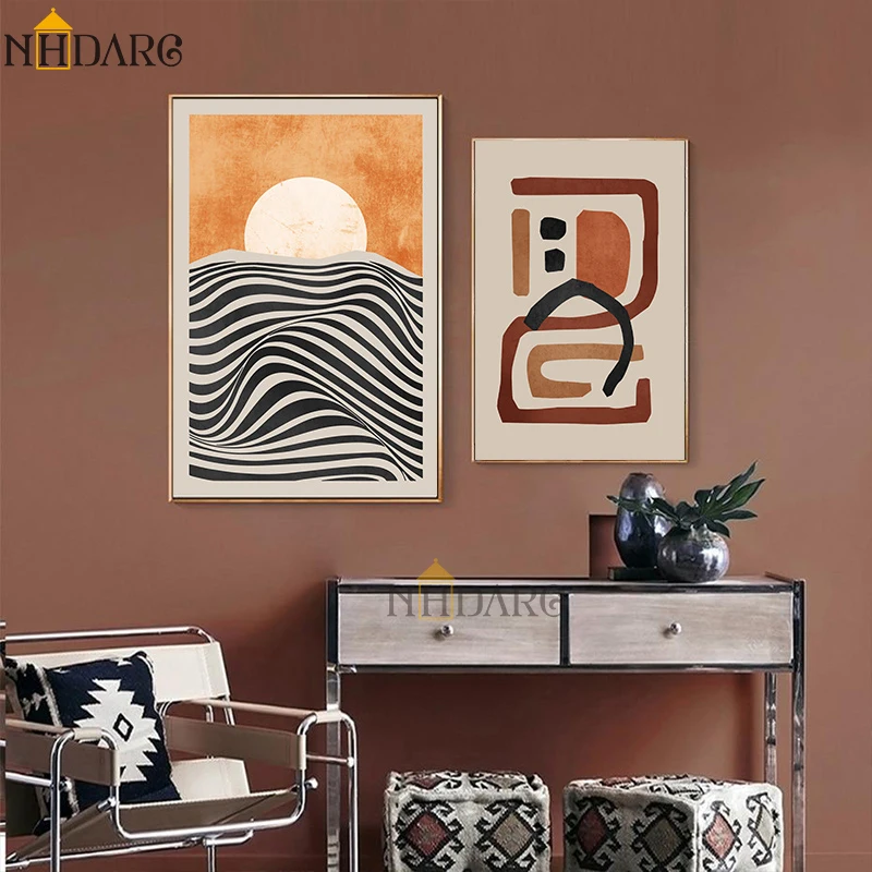 Винтажный настенный плакат NHDARC, Картина на холсте, абстрактное изображение восхода солнца для гостиной, украшение для дома