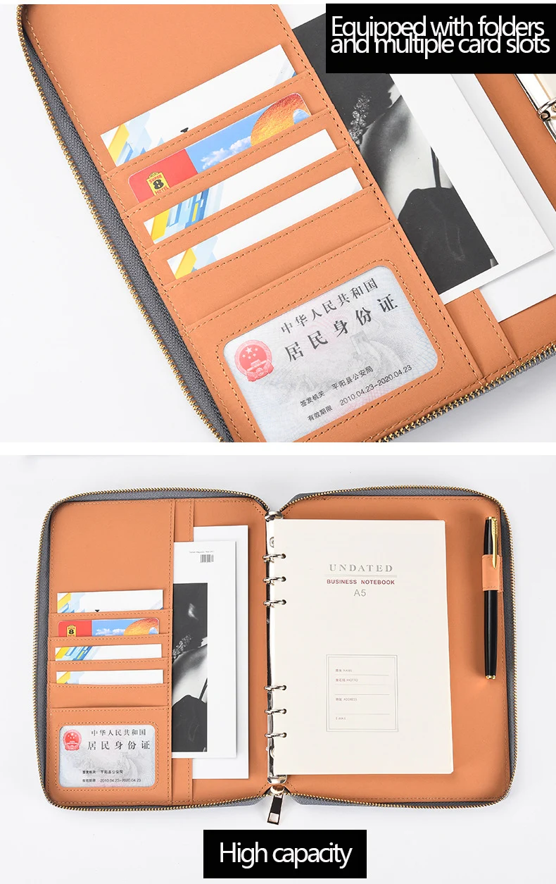 Классическая кожаная папка на молнии Ежедневник для планирования дня блокнот-органайзер, Макарон большой Ёмкость офисные органайзерыменеджер Папка с отделением для карт