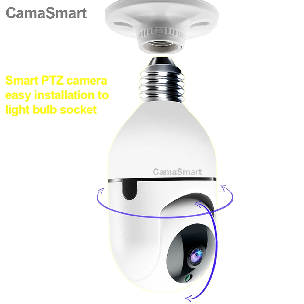 Лампочка с разъемом E27, IP-камера с Wi-Fi, PTZ, автоматическое слежение, водонепроницаемая, легкая установка, для домашней безопасности, Ycc365plus