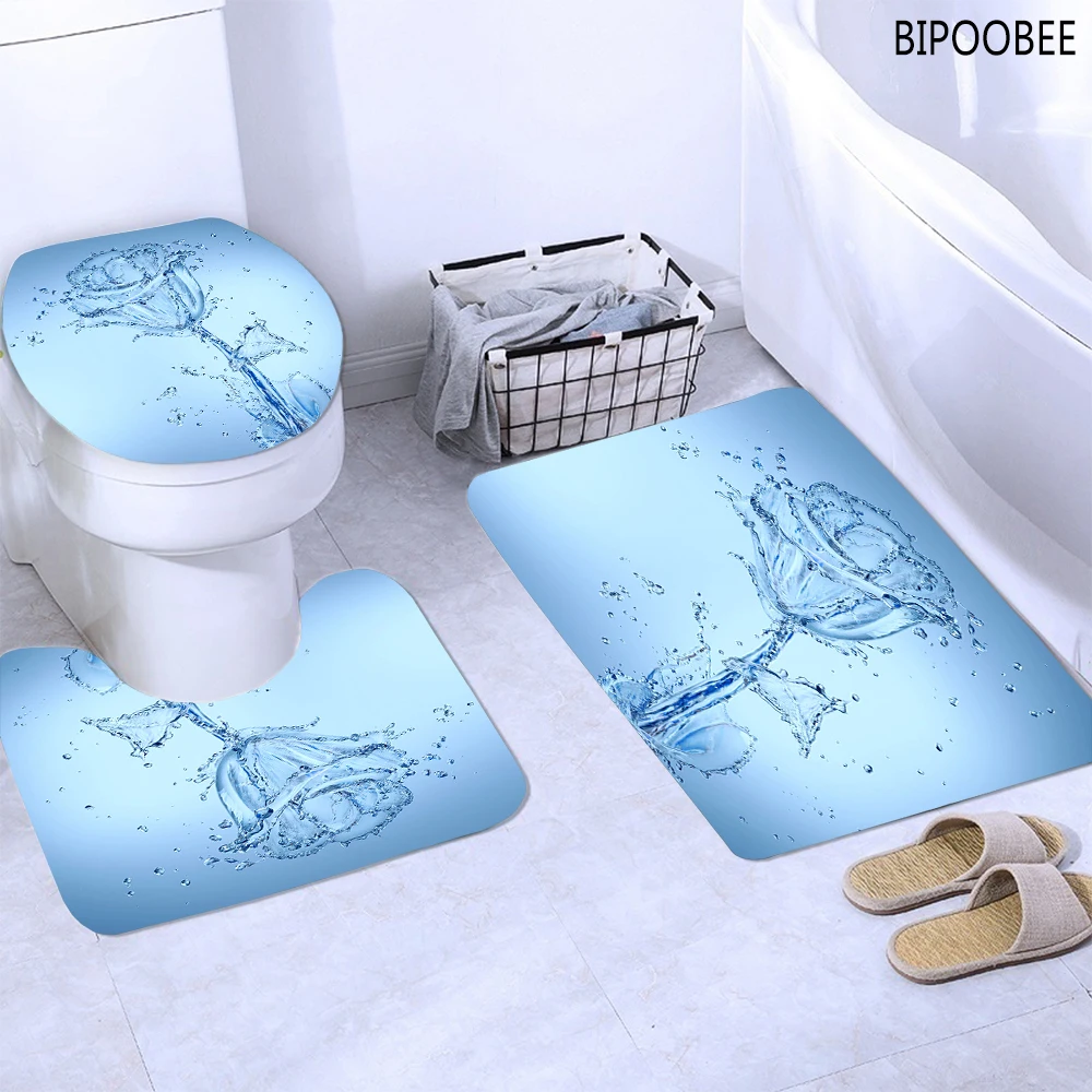 Водяная занавеска для душа в форме розы, занавеска для ванной комнаты, красивые цветы, набор ковриков для ванной, чехол для унитаза, коврик на подставке, противоскользящий ковер