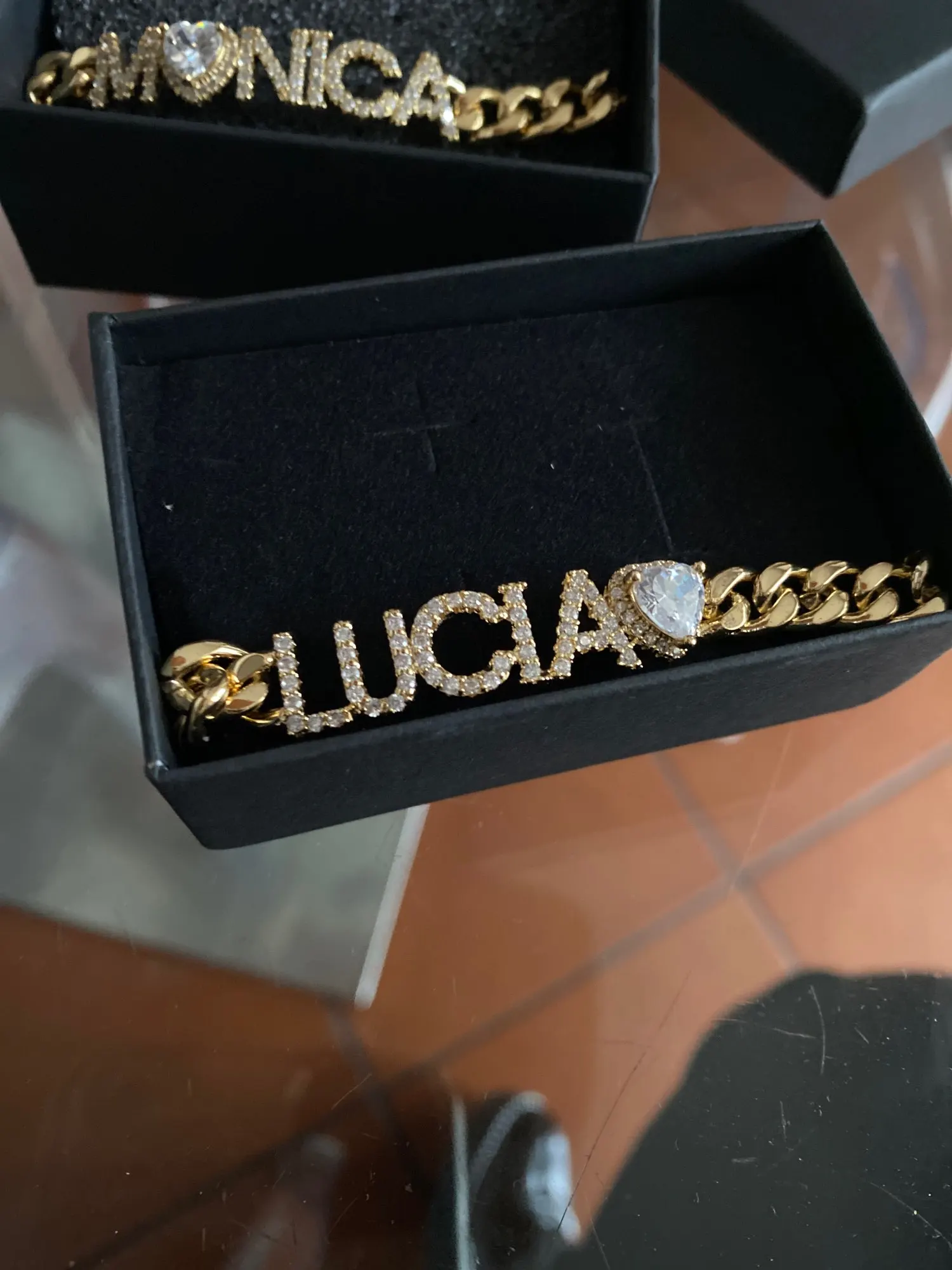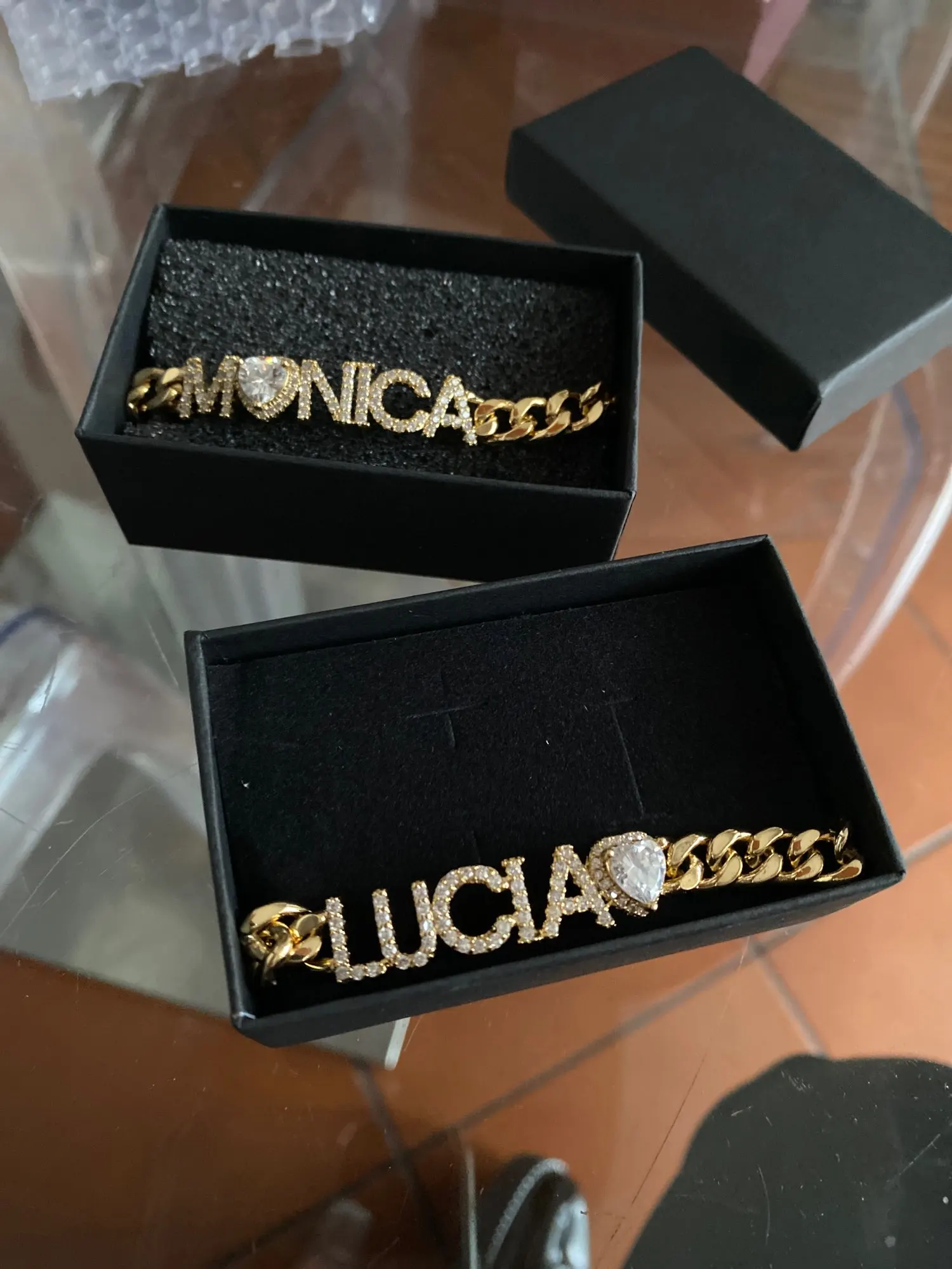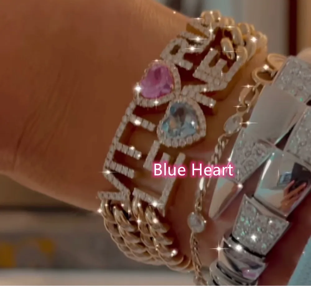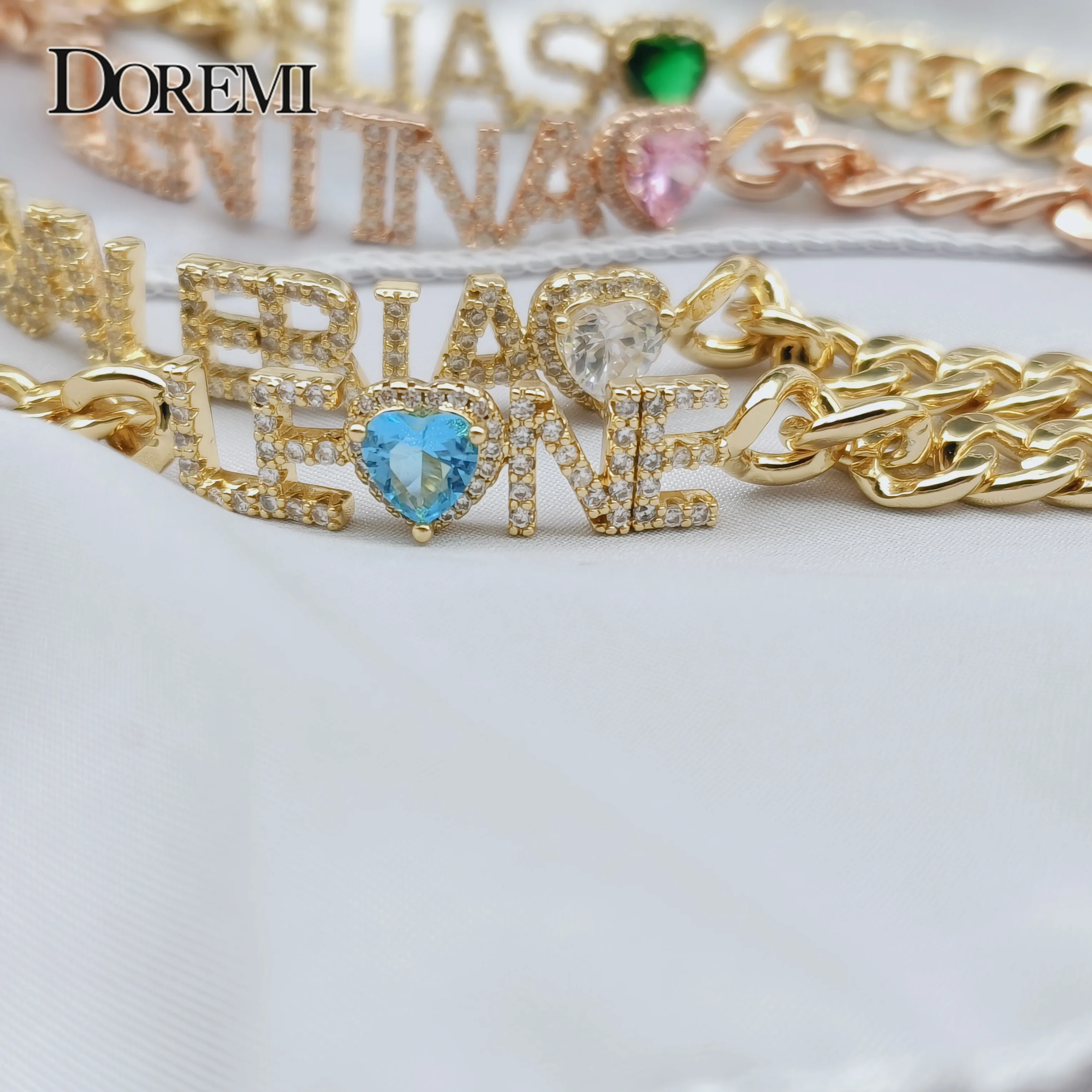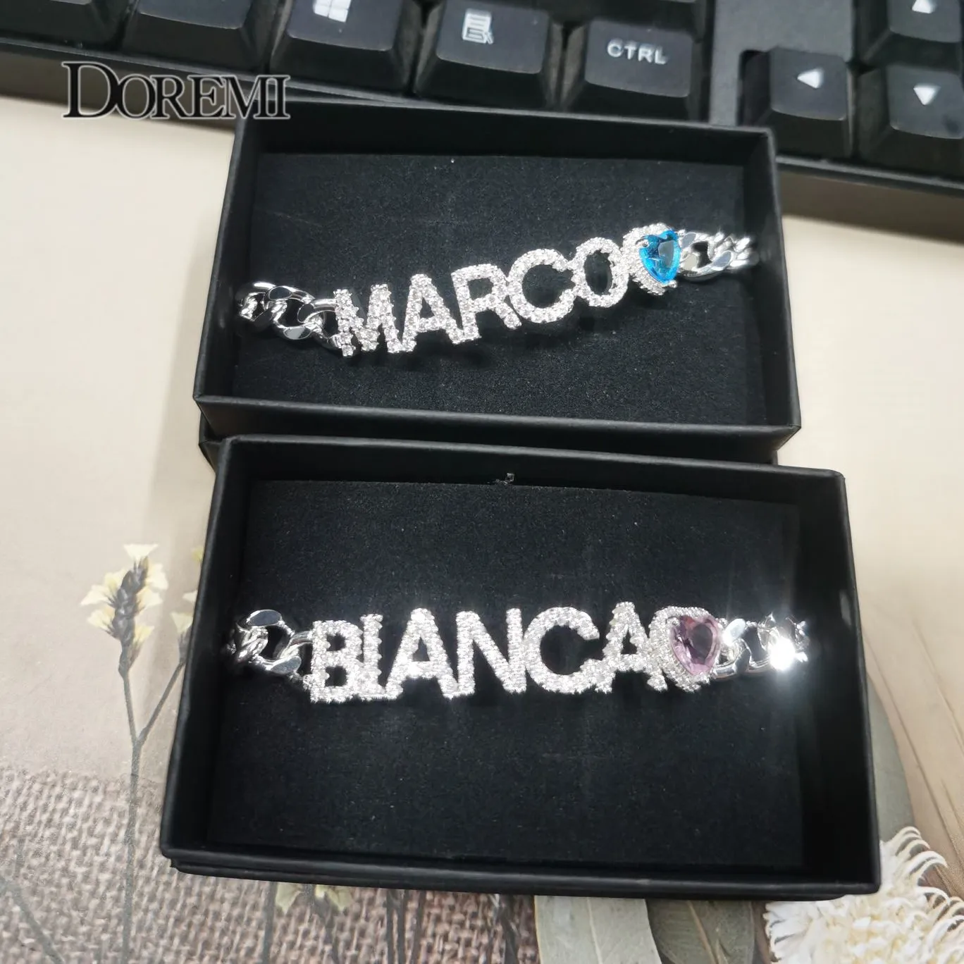 DOREMI розовые браслеты с фианитами в форме сердца с толстыми кубинскими звеньями, браслет с именем имени, циркониевый браслет-цепочка для женщин, подарок