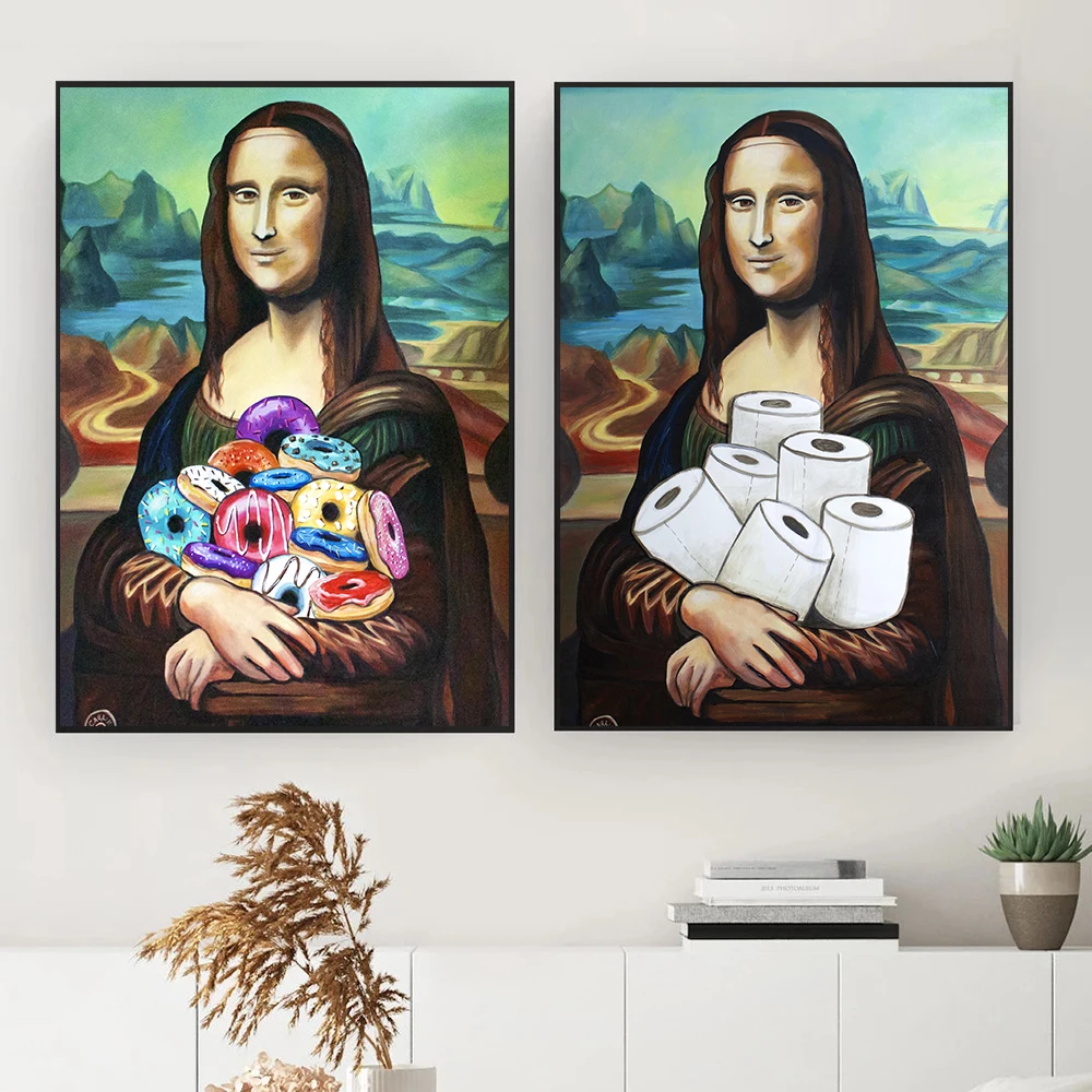 Забавный плакат на туалетную бумагу с Моной Лизой, настенное искусство, декор для ванной комнаты, холщовая картина, украшение для дома, Модульная картина для гостиной