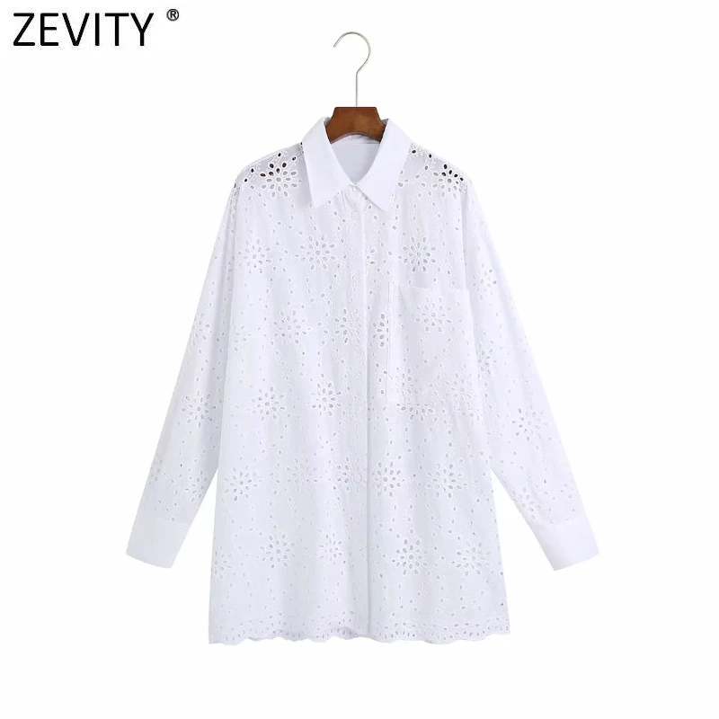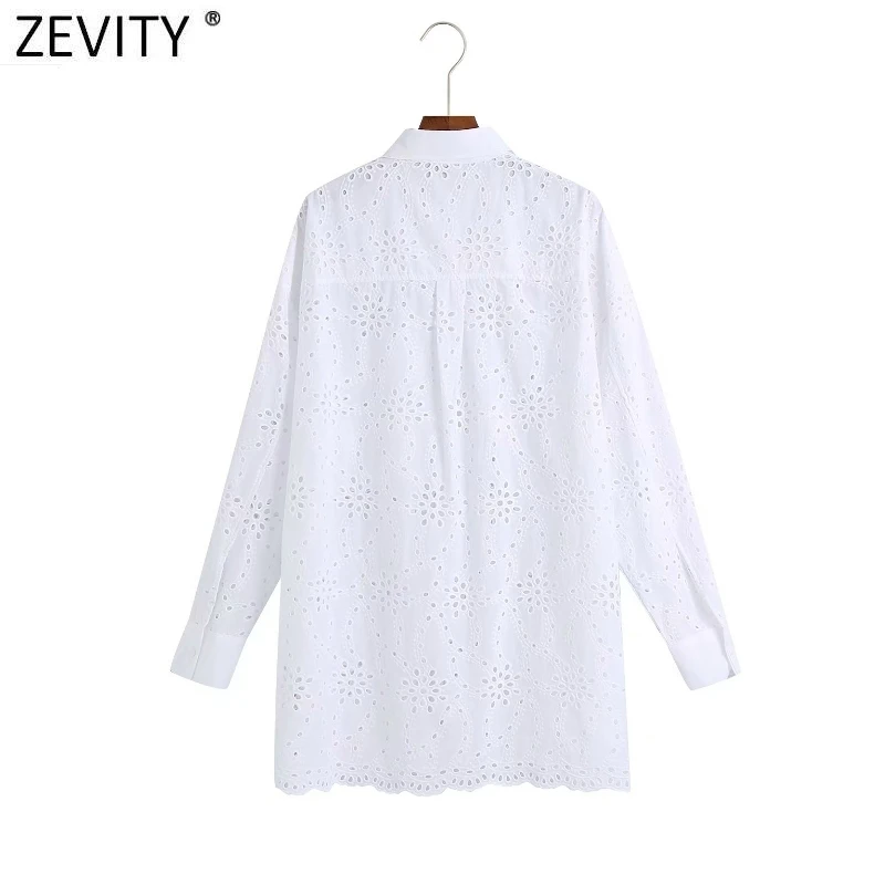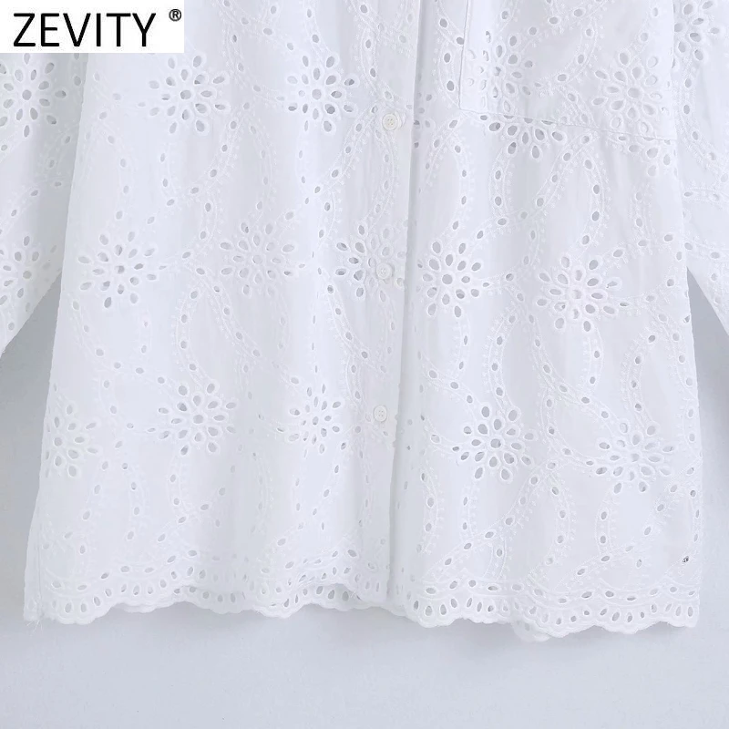 Zevity 2021 женская сексуальная белая блузка с вышивкой, Офисная женская Свободная блузка, топы LS9459
