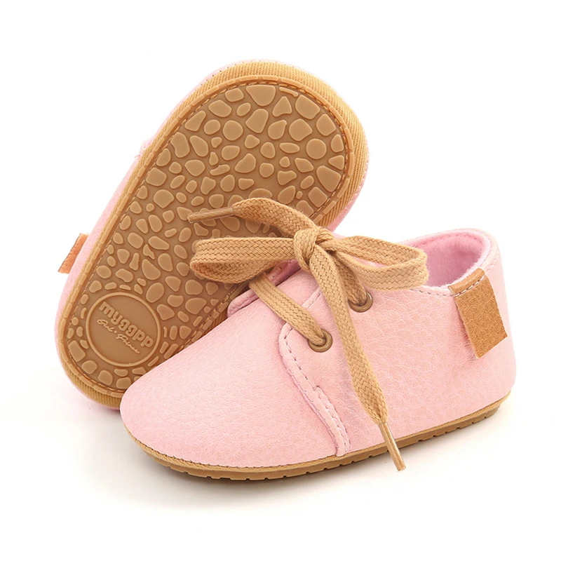 Обувь для новорожденных, в стиле ретро, однотонная, кожаная, с рези...