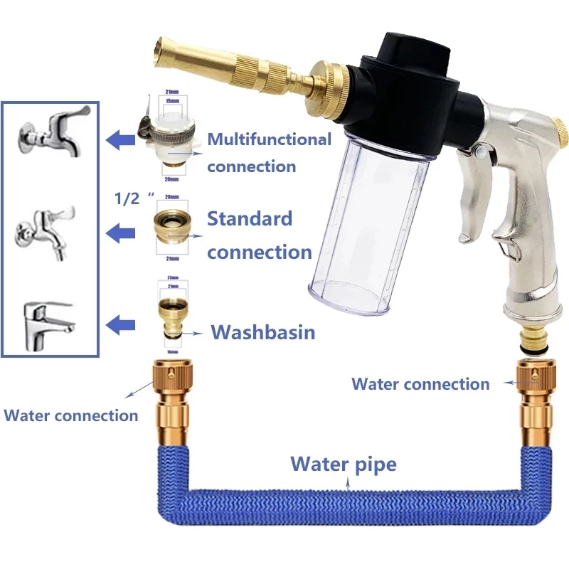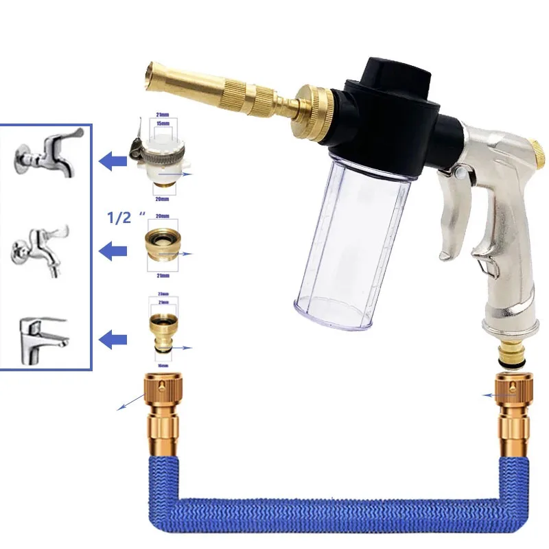 Большой садовый шланг, расширяющийся гибкий шланг, используемый для мойки автомобилей высокого давления, волшебный шланг, металлический пистолет-распылитель, для полива сада на открытом воздухе