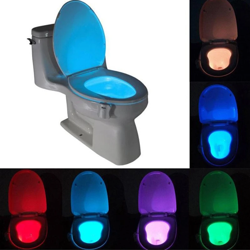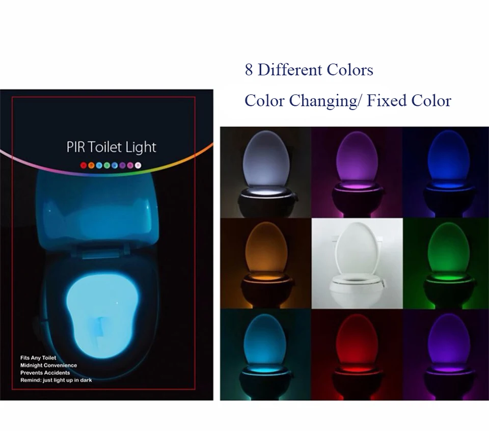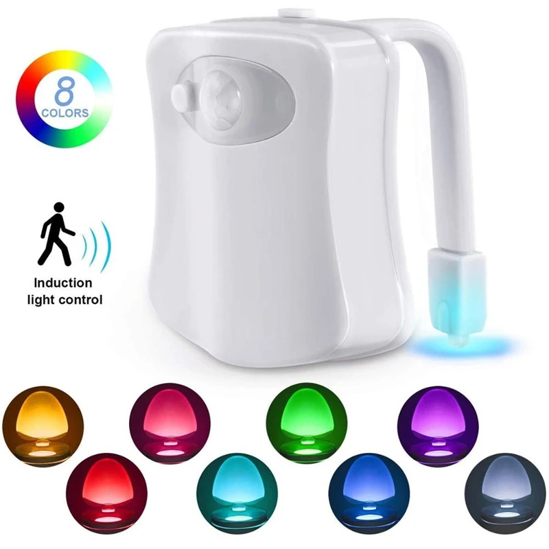 Унитаз светодиодный Ночной светильник 8 Режим тела зондирования умный движения Сенсор светильник s Батарея работает Водонепроницаемый Подсветка светильник для туалет ванная комната