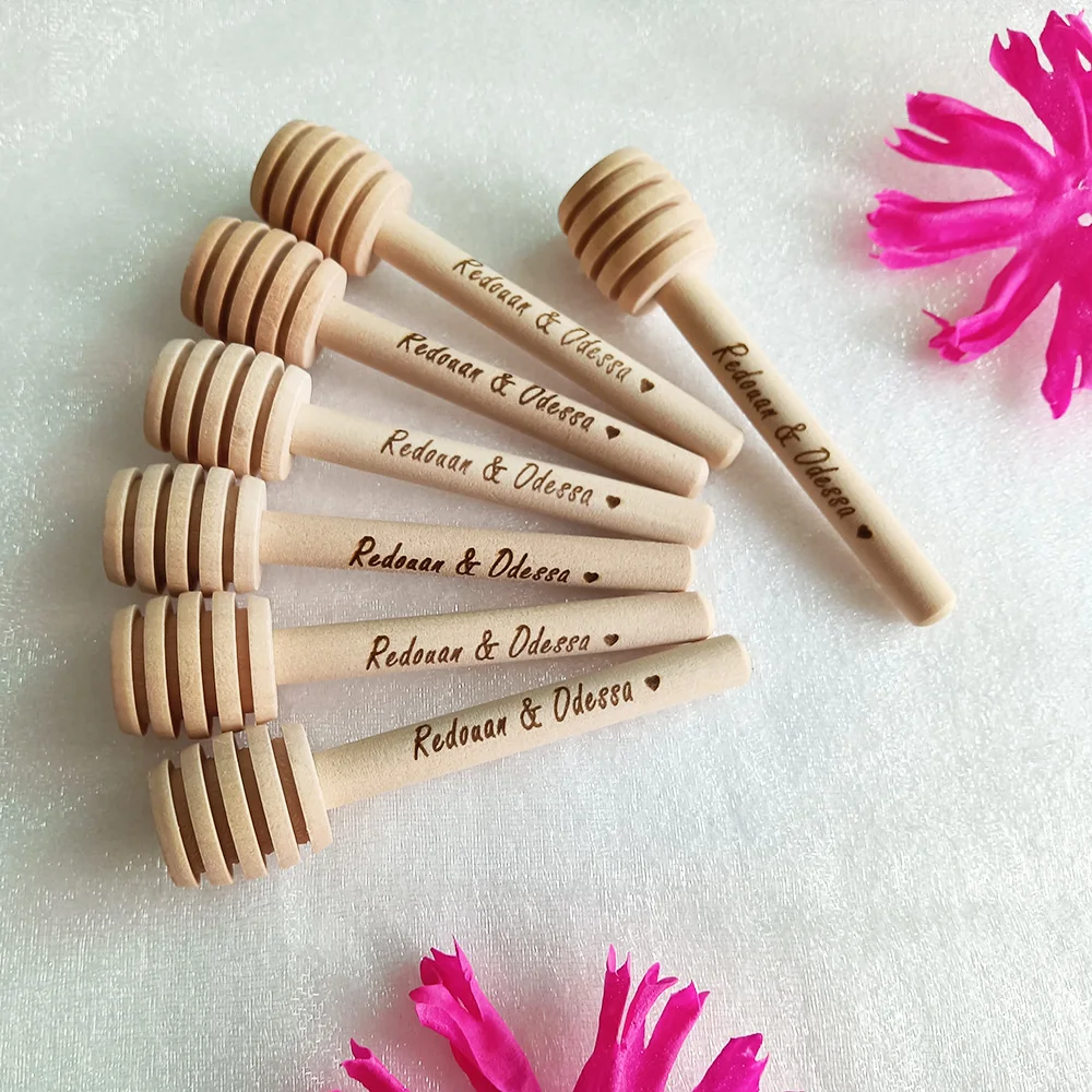 Высококачественные персонализированные деревянные палочки для меда, Индивидуальные свадебные сувениры, украшение для детского душа, мини-сервер для медовой банки