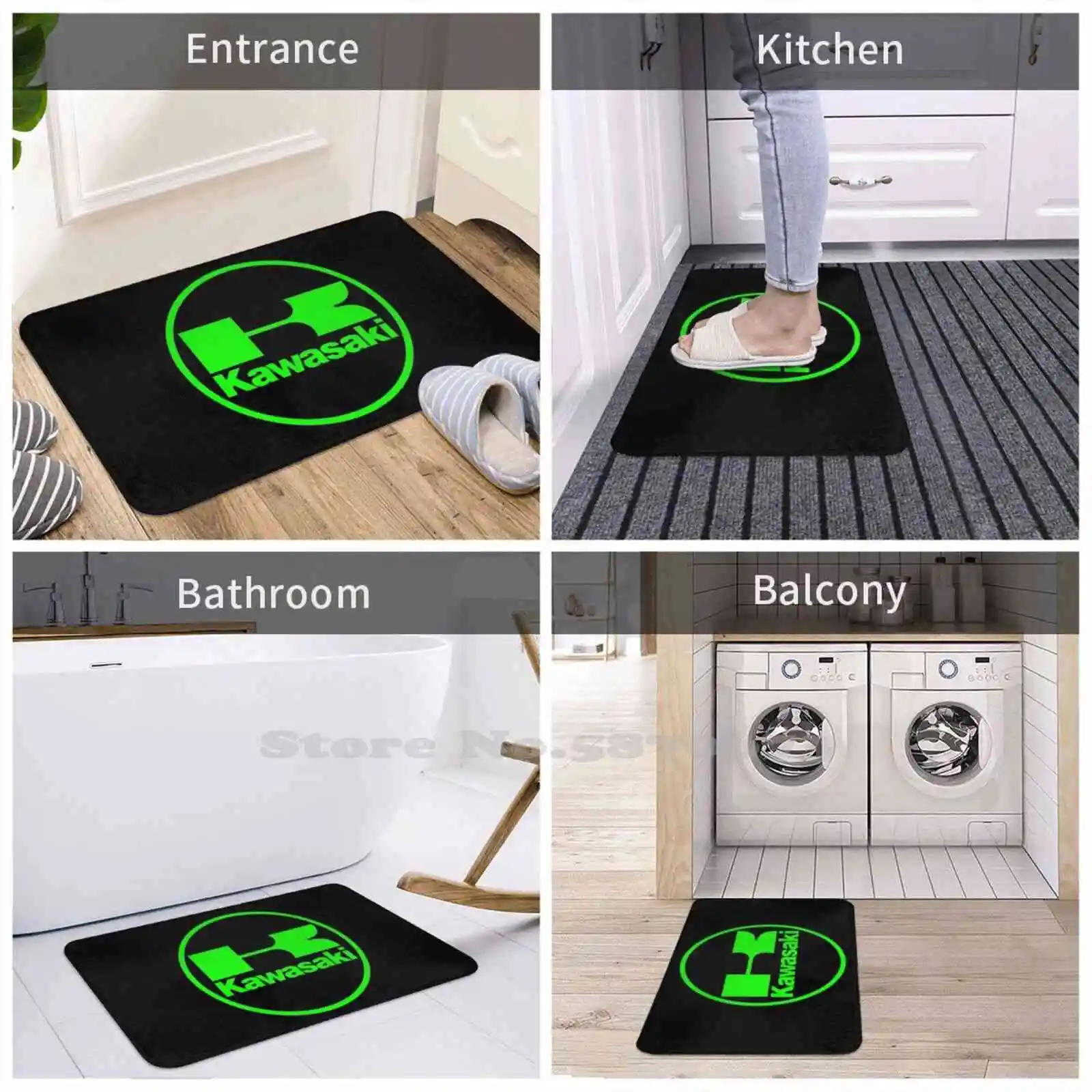Мотоциклетный круглый коврик с логотипом, Зеленая дверь, коврик для ног, домашний коврик с логотипом, спортивный мотоциклетный Мотоспорт, японский зеленый скоростной гоночный коврик