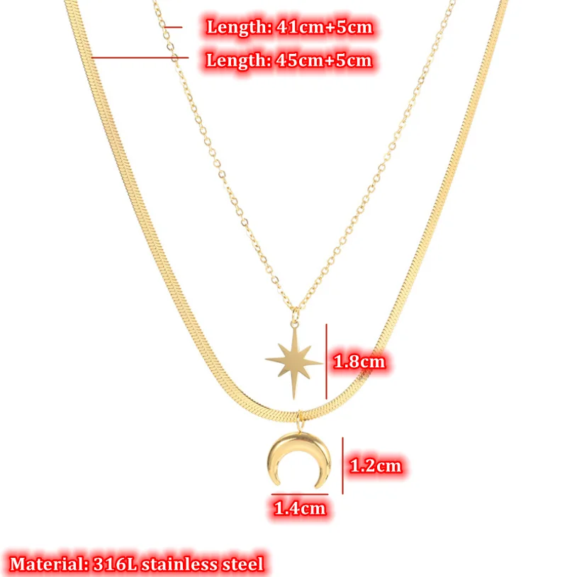 Цепочка-чокер Женская, двухслойная, из нержавеющей стали 316L, подвески в виде Луны, звезды
