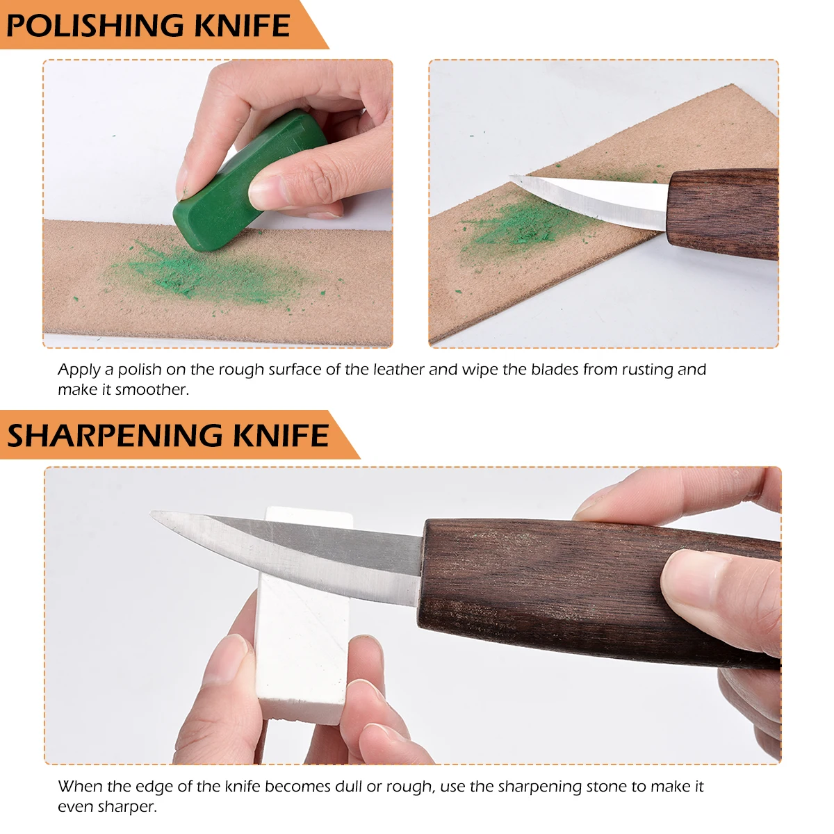 Посылка 1 х нож для пилинга (плоская ручка) 1 изогнутый резак (плоская ручка) 1 х Универсальный резак (плоская ручка) 1 камень для ножа 1 пара перчаток 1 точилка 1 ВОСК 1 х сумка 1 х Модель 4 резака 1 х модель 2 резака