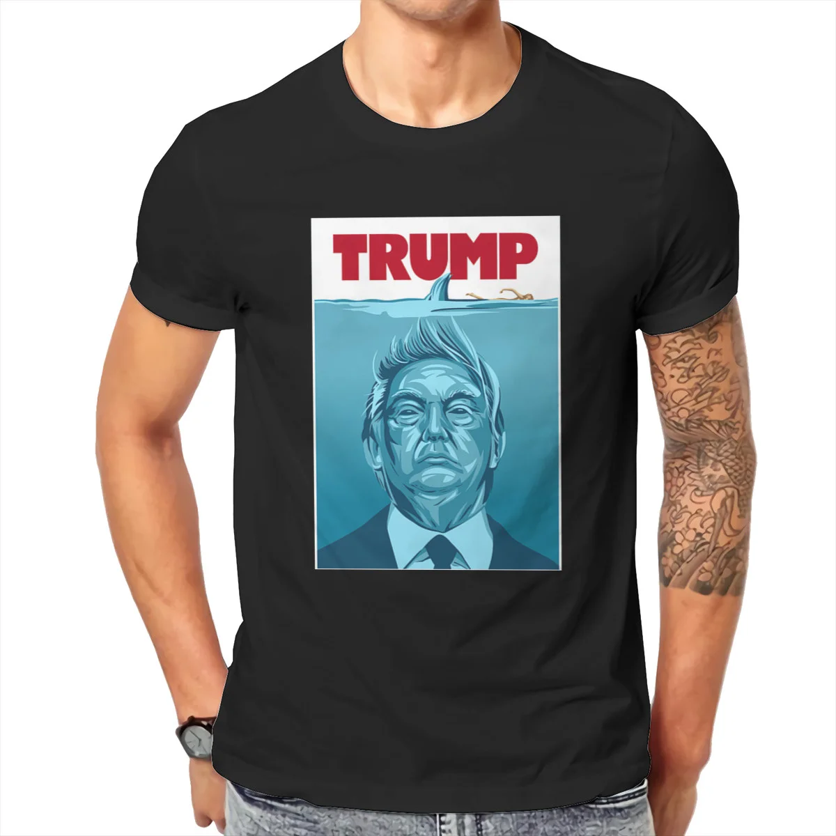 Футболка с персонажем аниме Трамп, Американская гордость, Дональд Трамп фильм "Челюсти", Акула, мужская летняя футболка