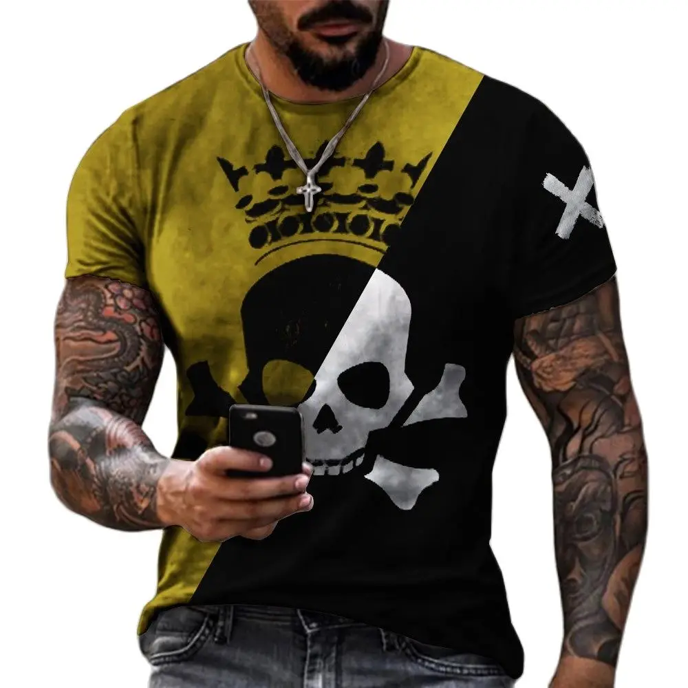 Футболка мужская с 3D-принтом черепа, модная тенниска оверсайз с кр...