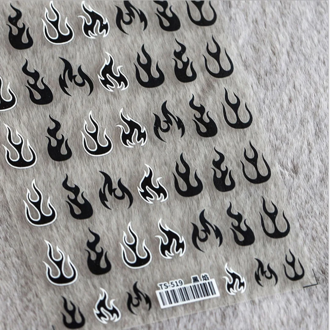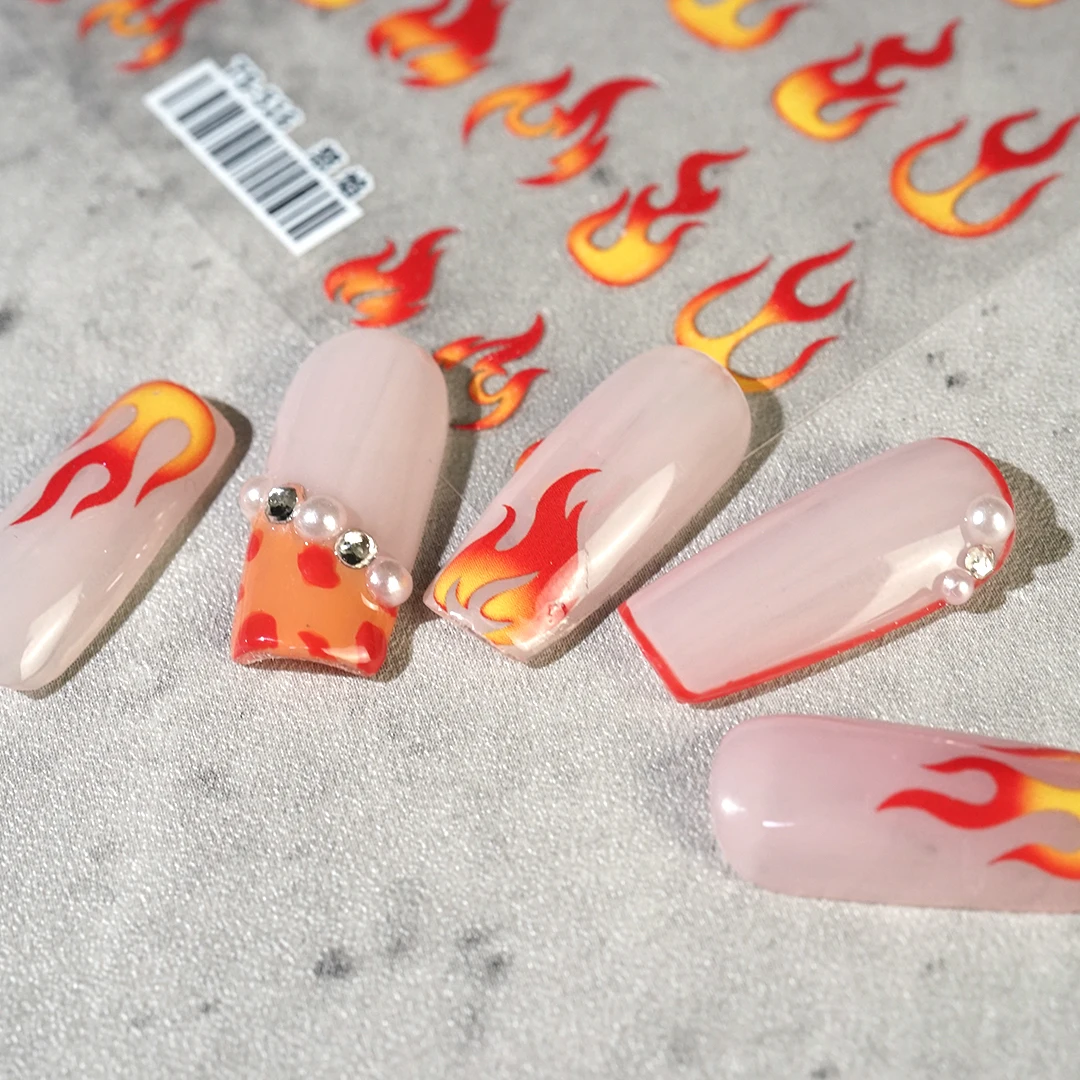 Наклейка для ногтей с эффектом пламени и огня, светфонарь, 12 стилей, высокое качество, 3D гравировка, наклейки для ногтей, художественные украшения, наклейки для ногтей, дизайн, Корея
