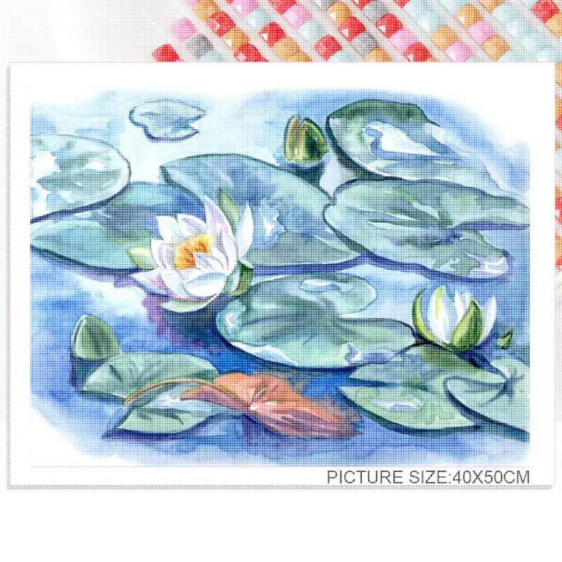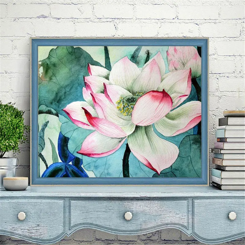 Камни в форме ромба круглый Алмазная Вышивка Цветы Вышивка крестом комплекты, украшение для дома Wall Art Постер "сделай сам" Лотос алмазов картина
