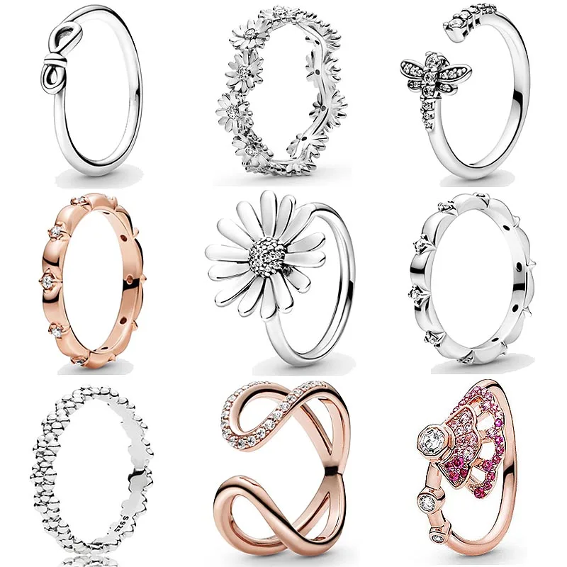 Оригинальное кольцо в виде цветочных лепестков и маргаритки, открытое бесконечность, вечная любовь, кольцо с кристаллами, серебряное кольцо, европейские ювелирные изделия