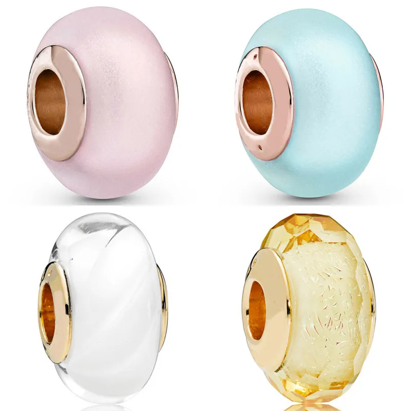 Белые волны, золотые граненые матовые синие и розовые фотообои, подходит для браслета Pandora, DIY ювелирные изделия
