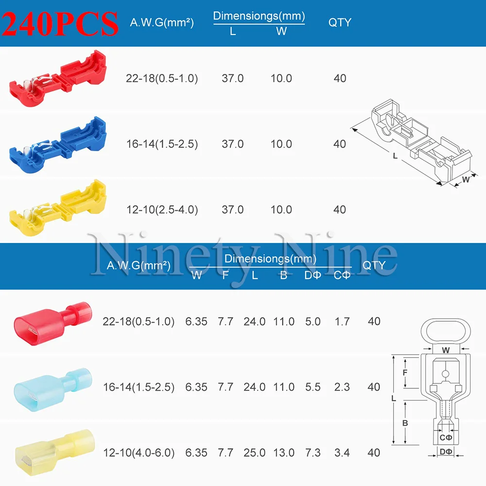 Т-образные соединители, автоматическая дешинация электрического провода, искусственное быстрое отключение, изолированное от клемм лопаты, клемм