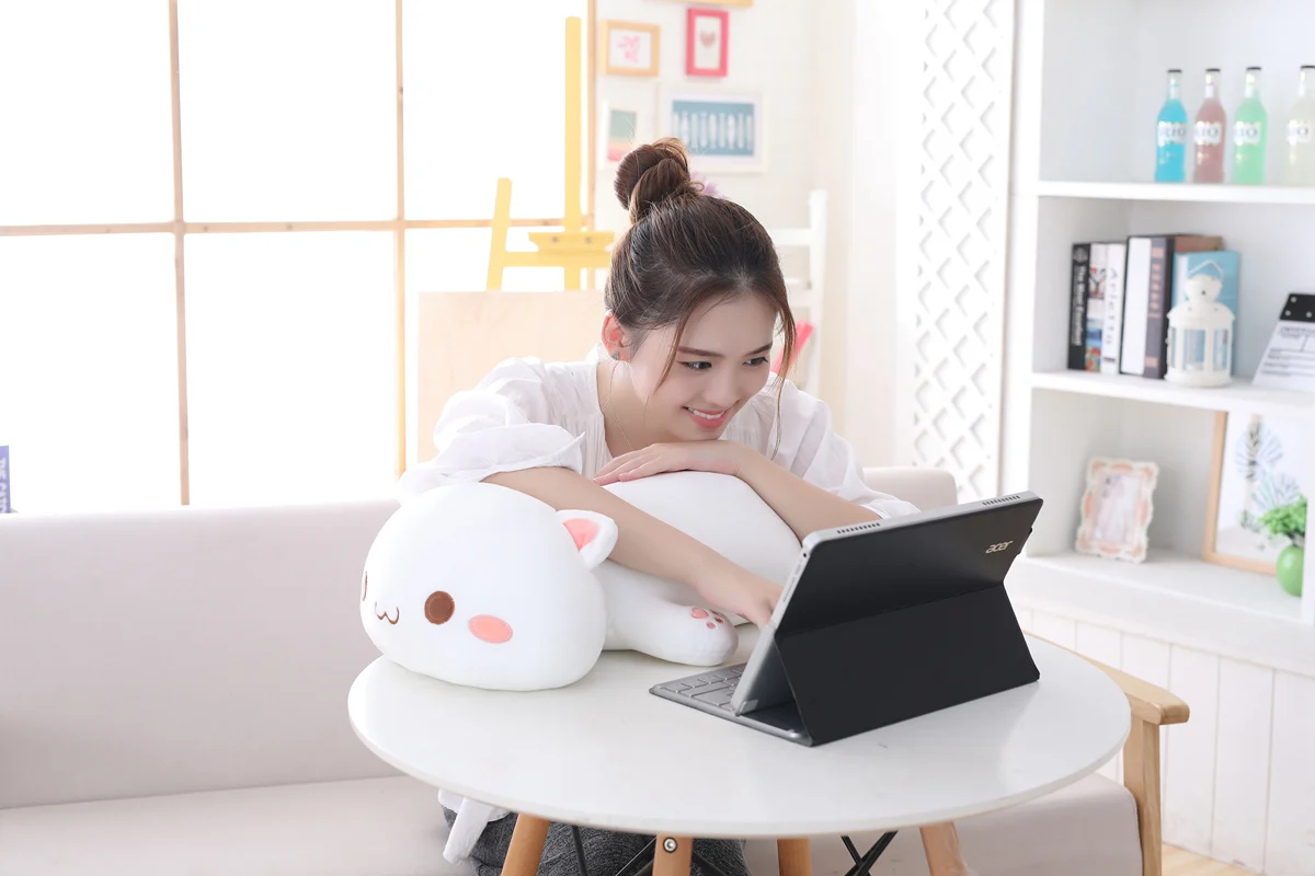 Мягкая плюшевая игрушка в виде кошки, 35-65 см, кавайная Лежащая кошка, большая подушка для обнимания, милые куклы-еноты, Мягкая Милая подушка в виде животного, подарок для девочек