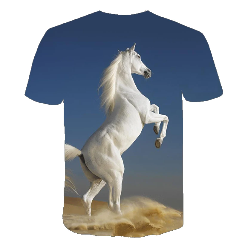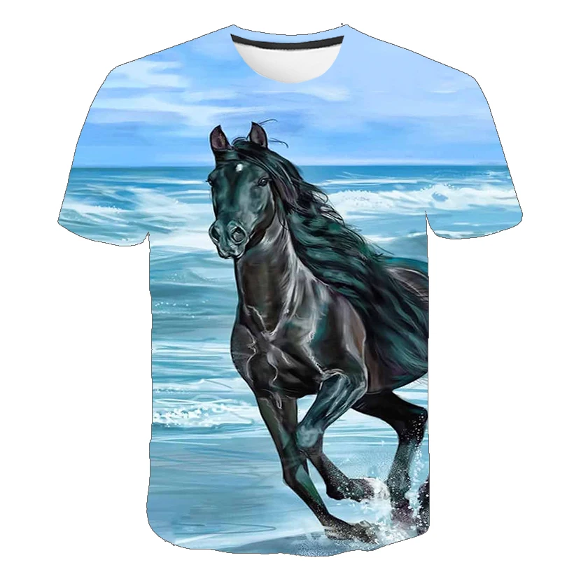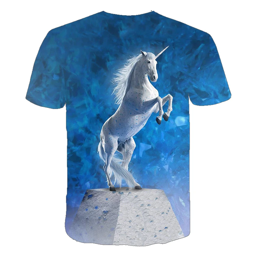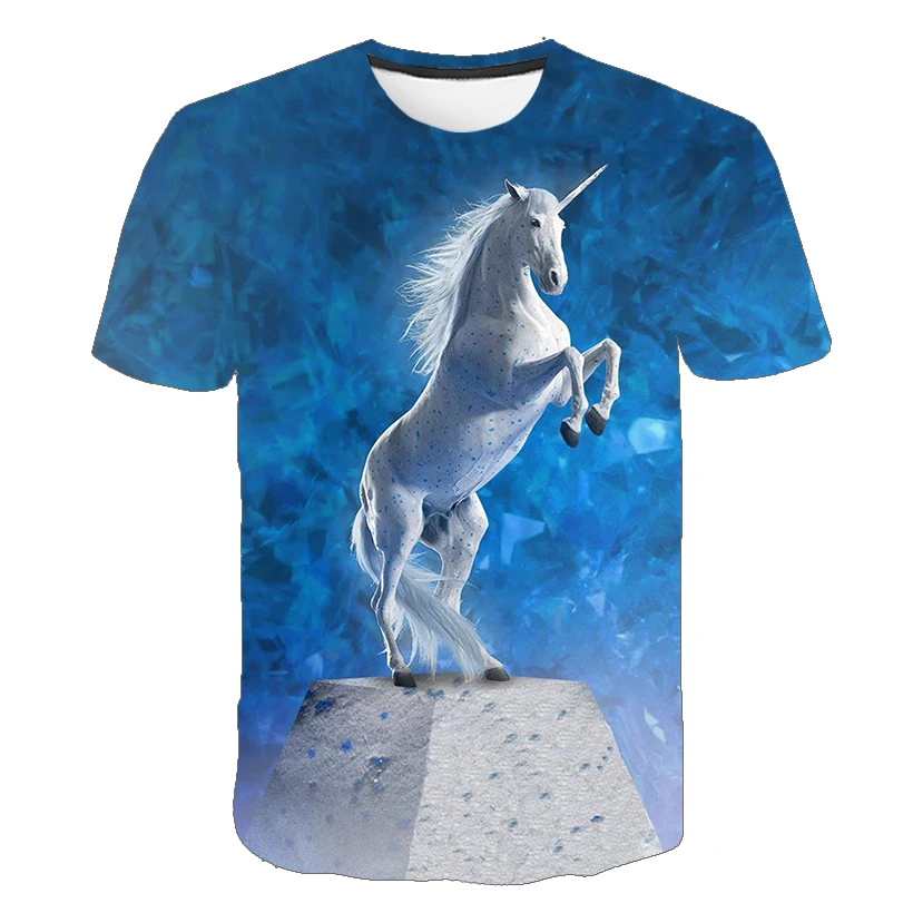 Летняя модная футболка унисекс с единорогом 2021, детские футболки с коротким рукавом для мальчиков с 3D принтом, детские топы с лошадью для девочек