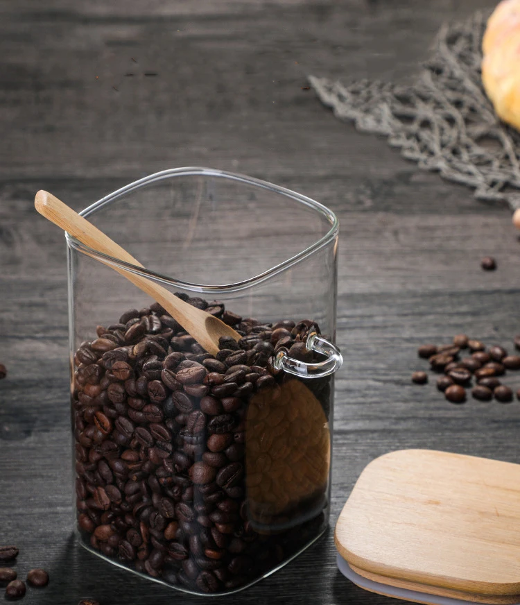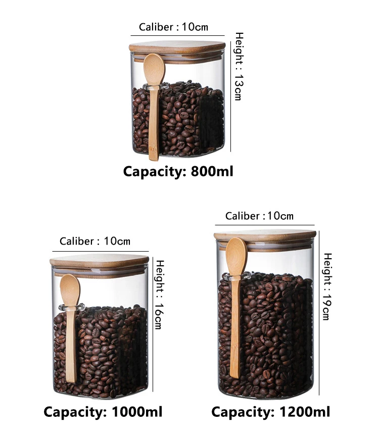 Емкость для хранения 800-1200 мл, емкость для хранения бытовой кухни, для ежедневного использования, герметичный емкость для хранения зерен и чая с деревянной ложкой