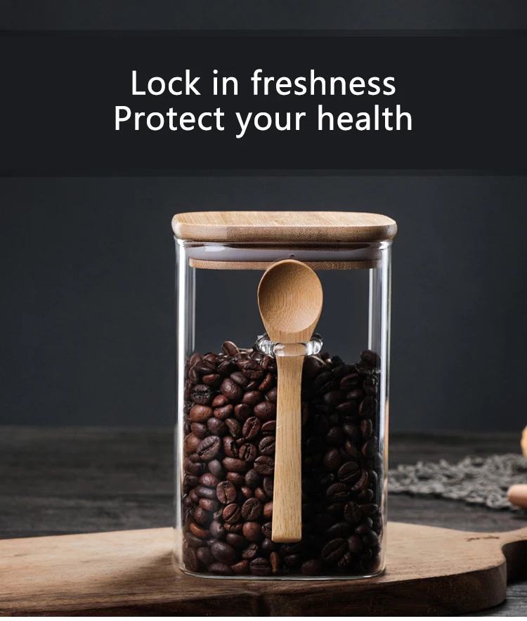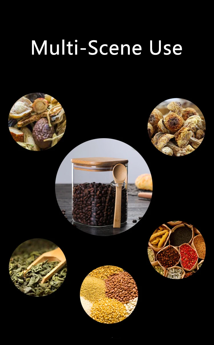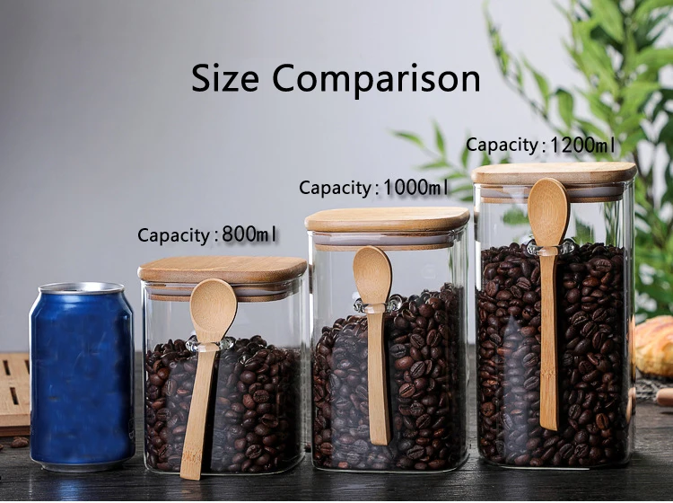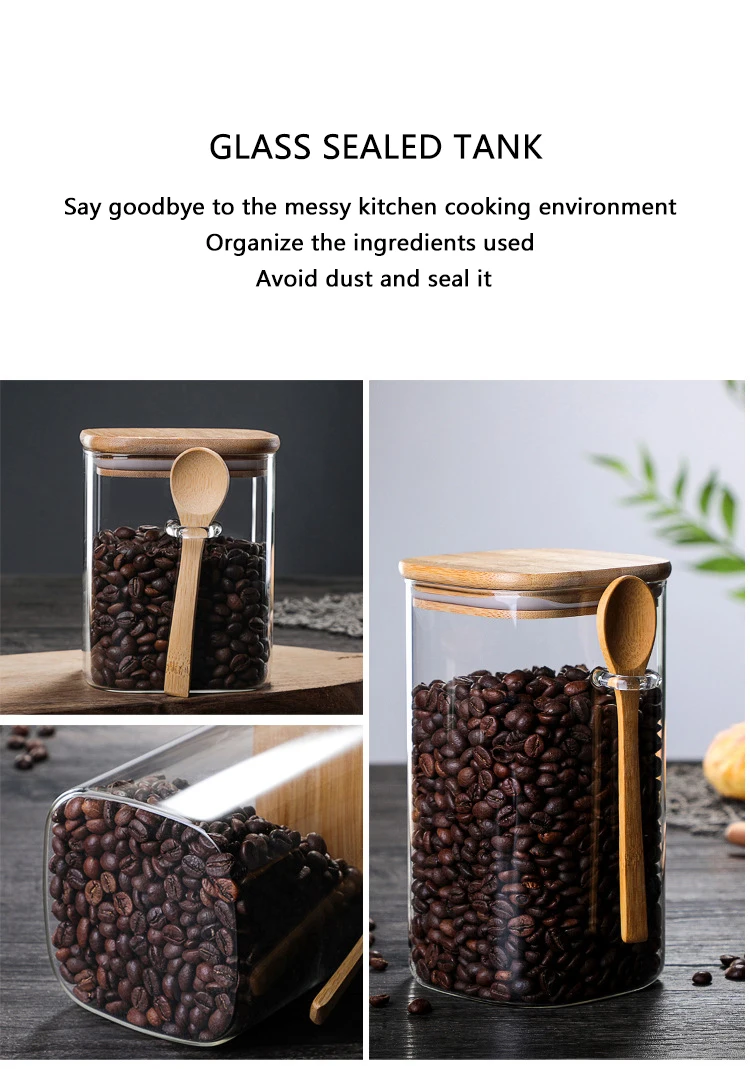 Очень практичная банка для хранения с крышкой и термостойкой стеклянной ложкой используется для солевые специи сладких чайных бобов. Его можно использовать для сохранения пищи, чтобы сохранить свежее хорошее уплотнение очень высокого качества, нетоксичный материал может использоваться с едой, не беспокоясь