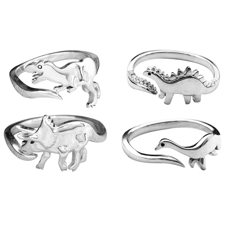 Кольца в виде динозавра, милые кольца серебряного цвета, открытые Р...