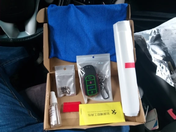 в подарок прислали чехол для ключа, и колпачки на нипель с того Chery. в комплекте салфетка для протирки выглядит дешево. Да и плëнка как то не очень выглядит. устнавлю отпишусь. Дя монтажа есть всë салфетка, райкель, и флакон для мыльного раствора.