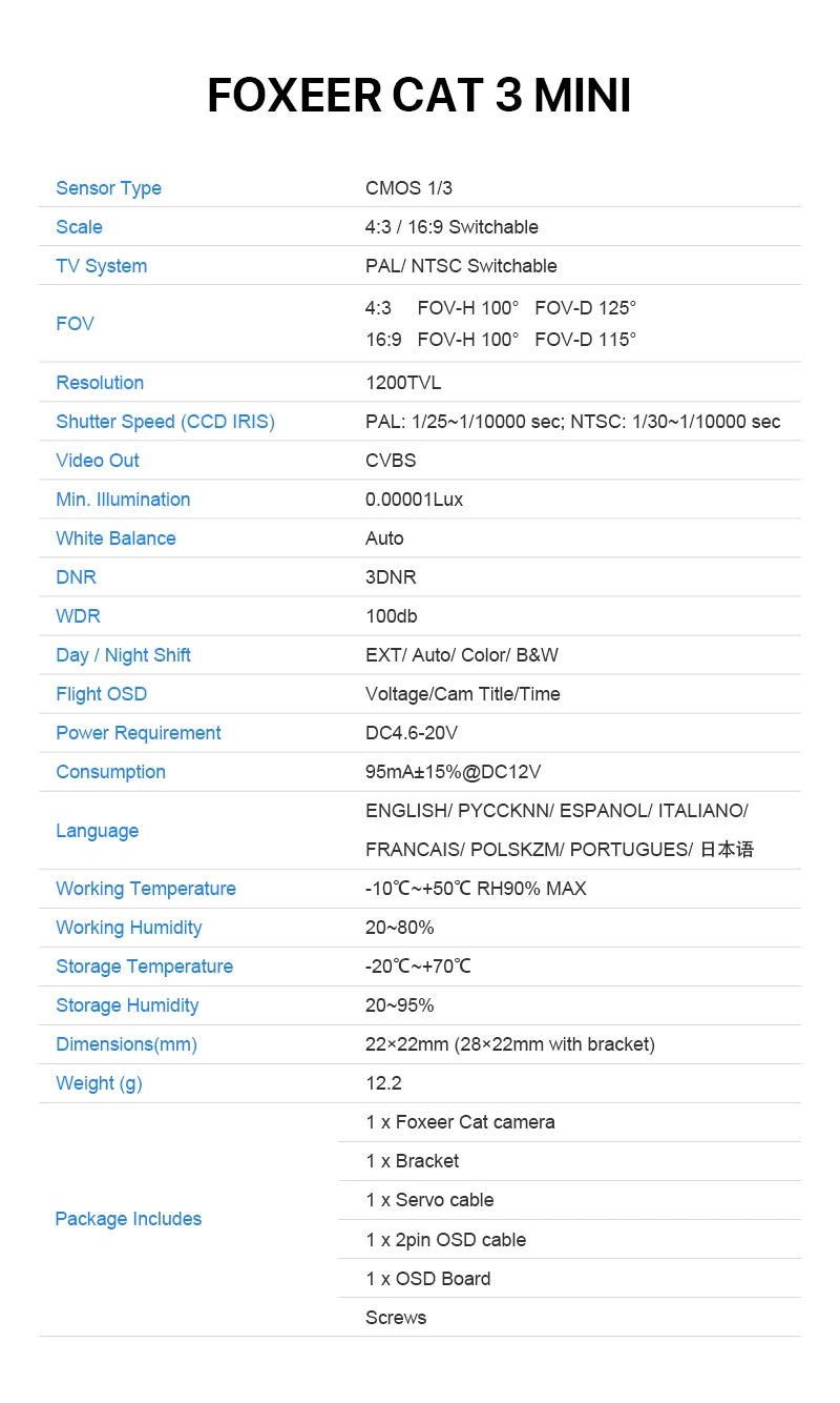 Foxeer Cat 3 Micro Cat 3 Mini с низкой задержкой и низким уровнем ...