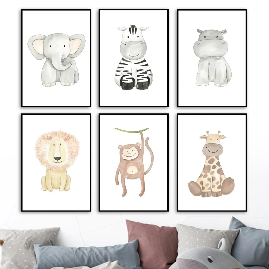 Kawaii слон зебра жираф Лев Обезьяна Бегемот настенная Художественная печать холст картина скандинавский постер настенные Фотографии Декор для детской комнаты