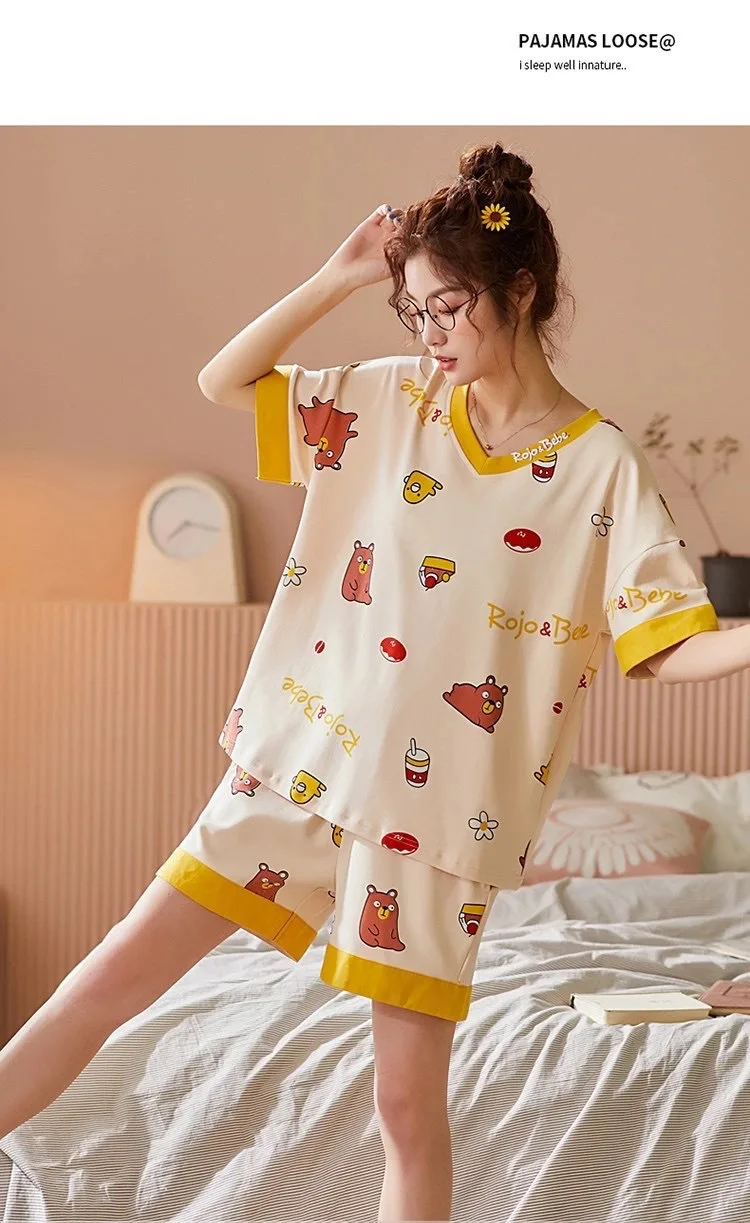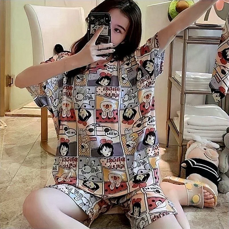 2021 летняя футболка с рисунками из мультфильмов ручной работы, серия женские пижамы размера плюс с футболкой с короткими рукавами и шортами для девочек пижама, комплект из 2 предметов, милое платье для девочек домашняя пижама одежды