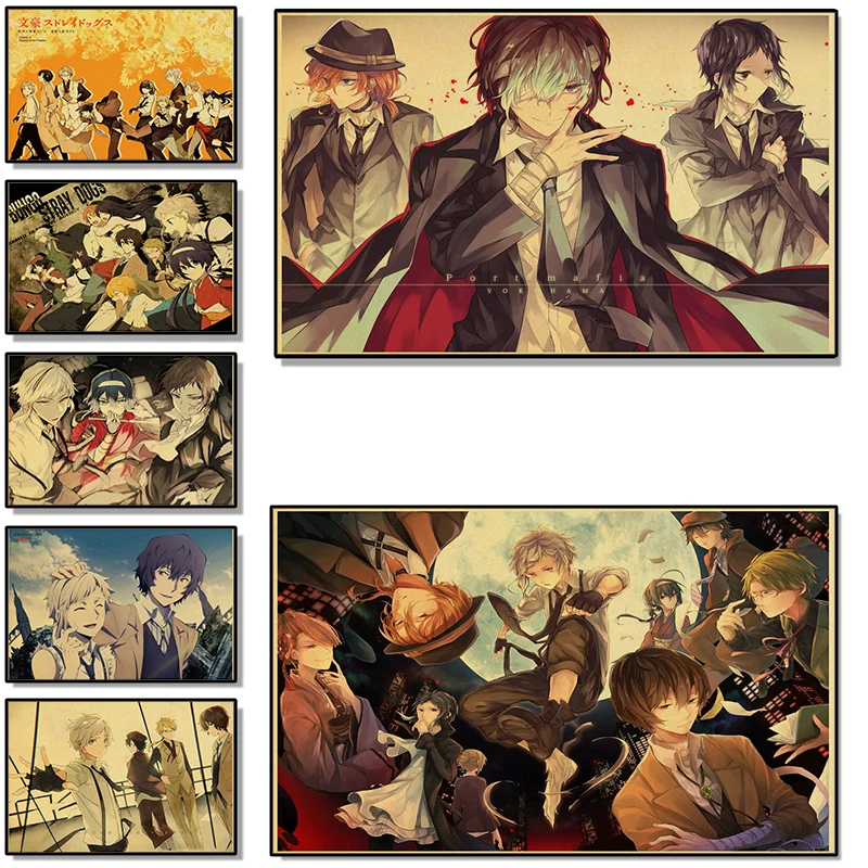 Ретро аниме постер Bungou бродячие собаки картины на холсте и принты Куадрос художественная роспись домашнее украшение для детской комнаты