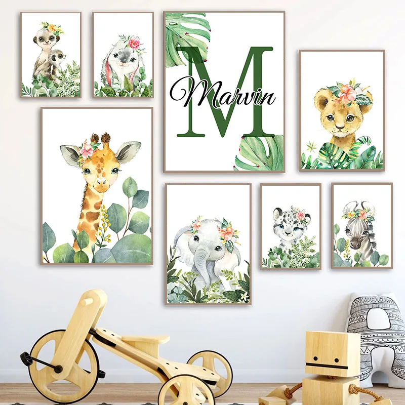 Пользовательское имя ребенка плакат печать жираф слон лев Зебра пер...